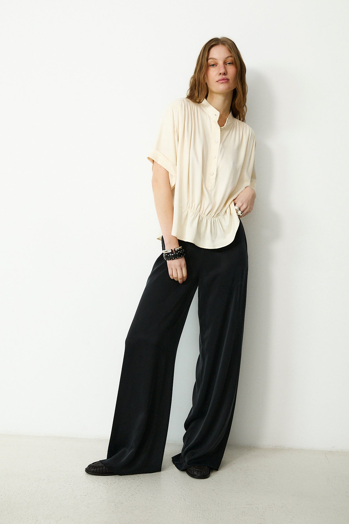 Explore the Essentials collection featuring satin blouses, camisoles, wide-leg trousers, pleated tops and midi dresses. Each piece is crafted from luxurious fabrics with refined cuts for effortless day-to-night dressing, travel and everyday style.