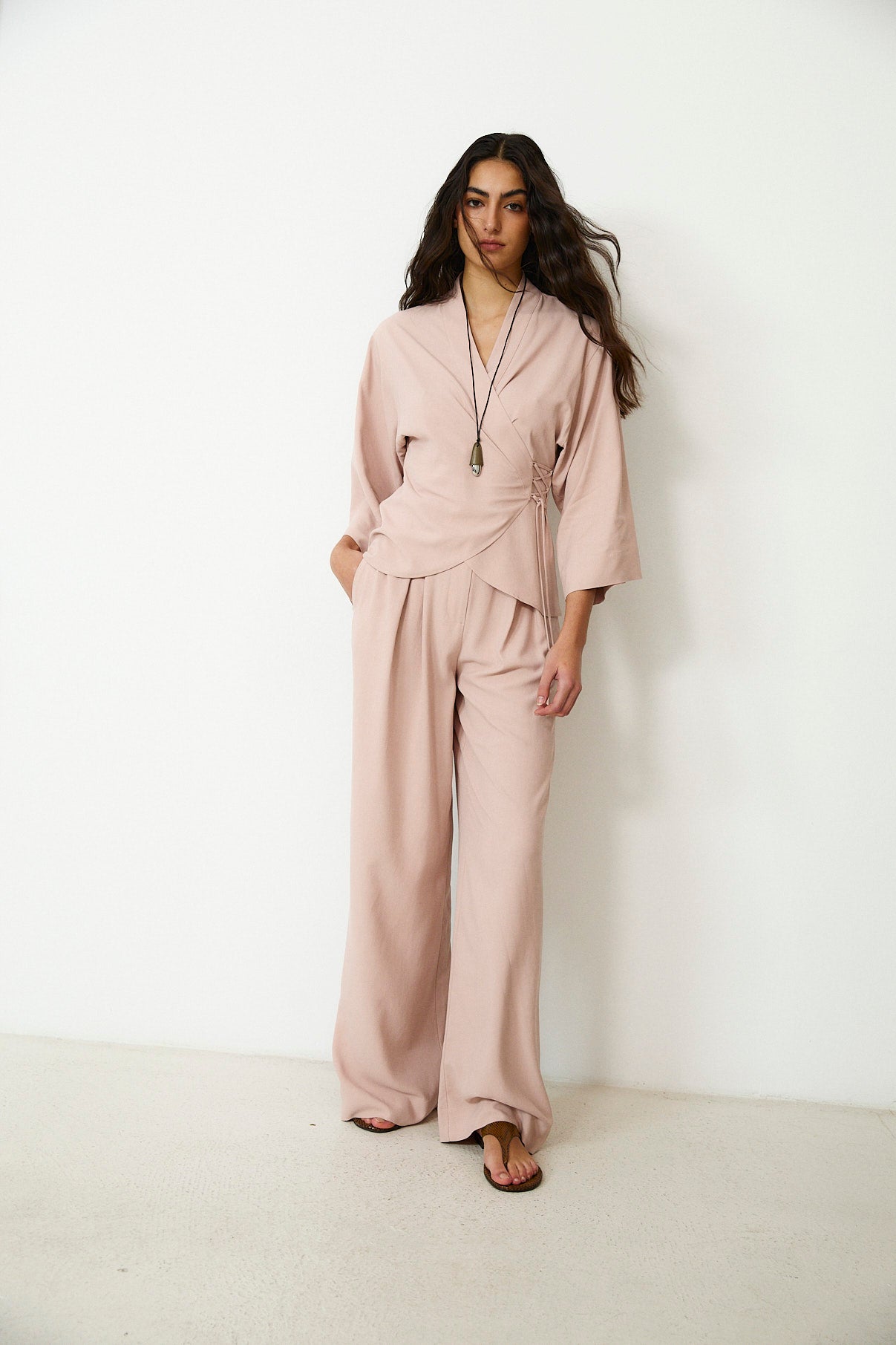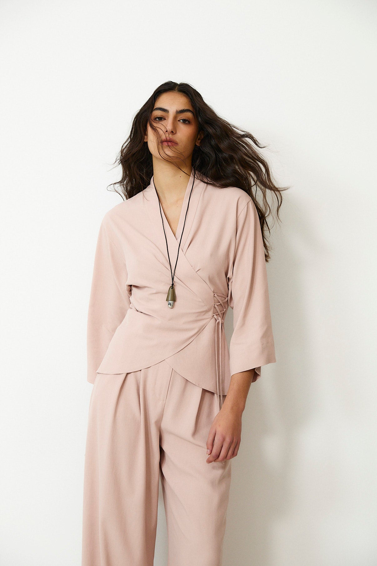 LOURDES | Light Pink Silk Wrap Blazer