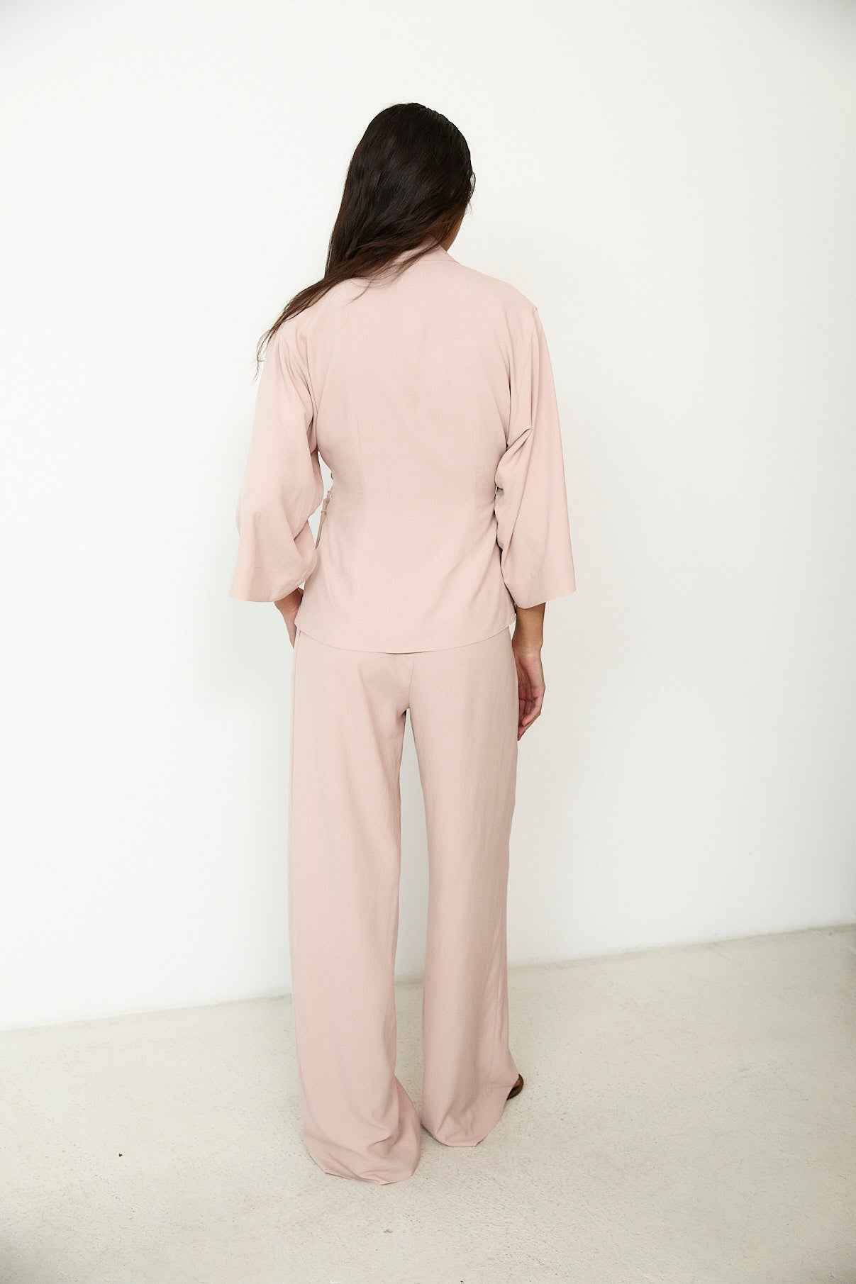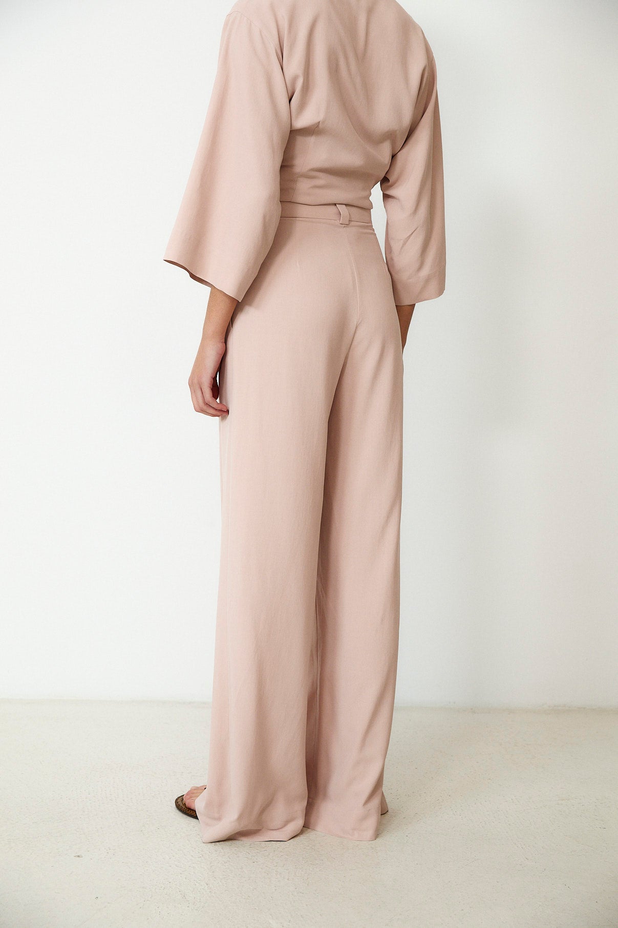 LOURDES | Light Pink Silk Wide Leg Trousers