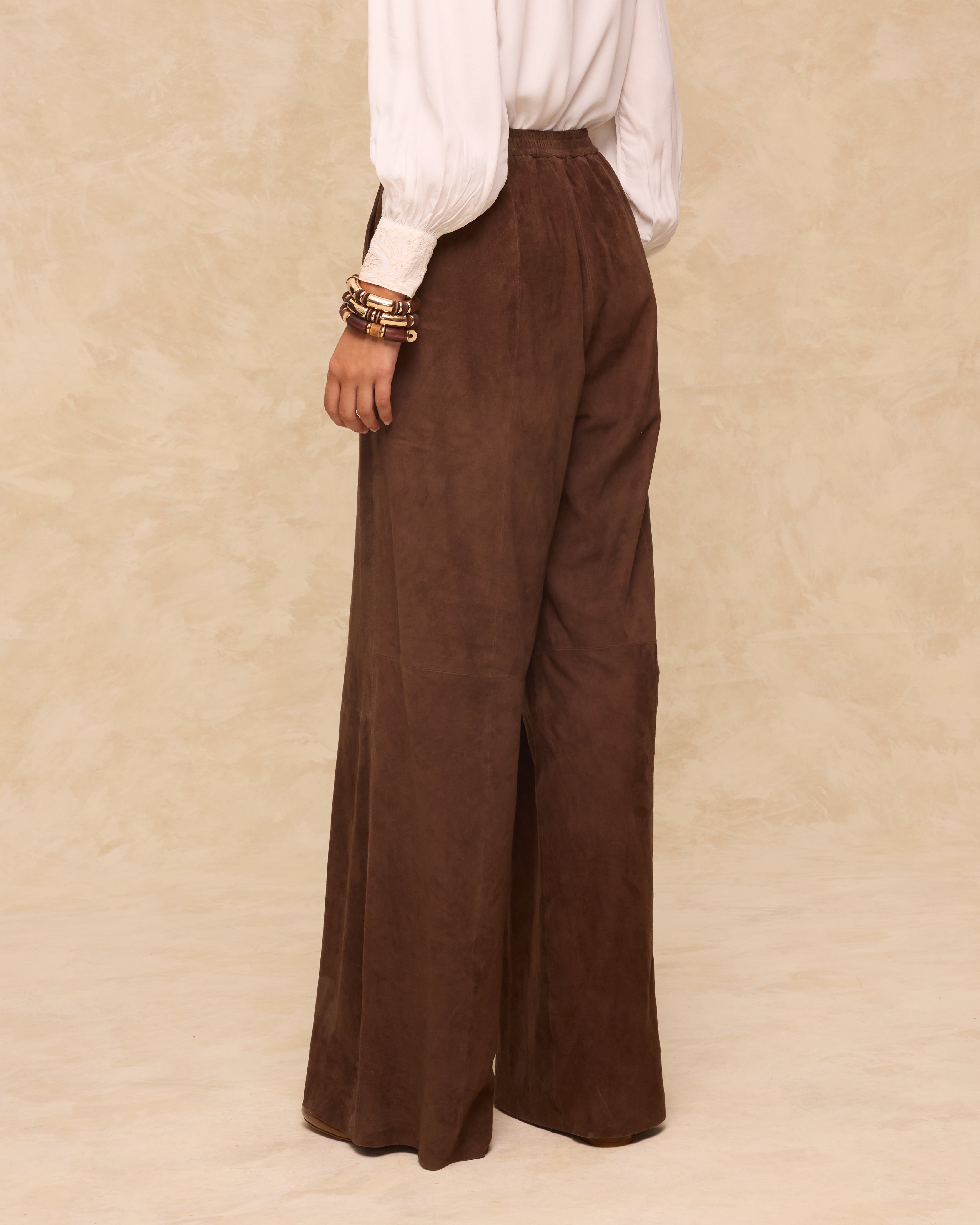 MOCHA | Dark Brown Suede Wide-Leg Trousers