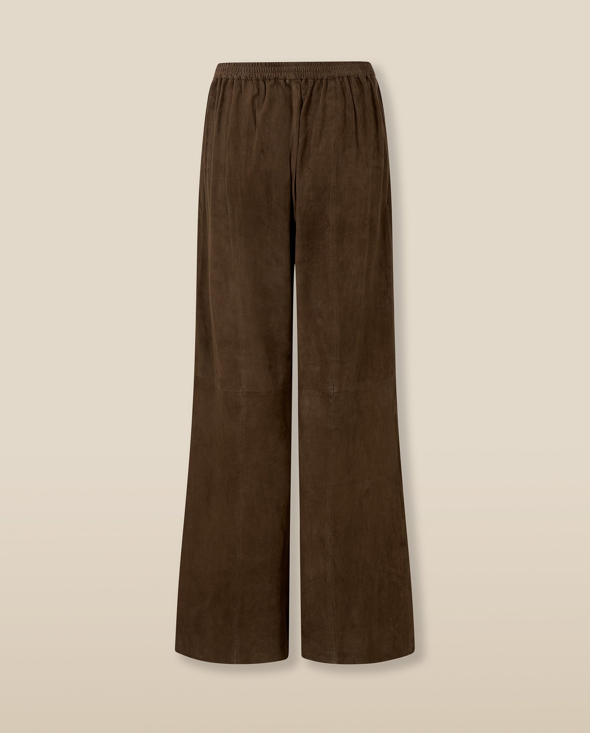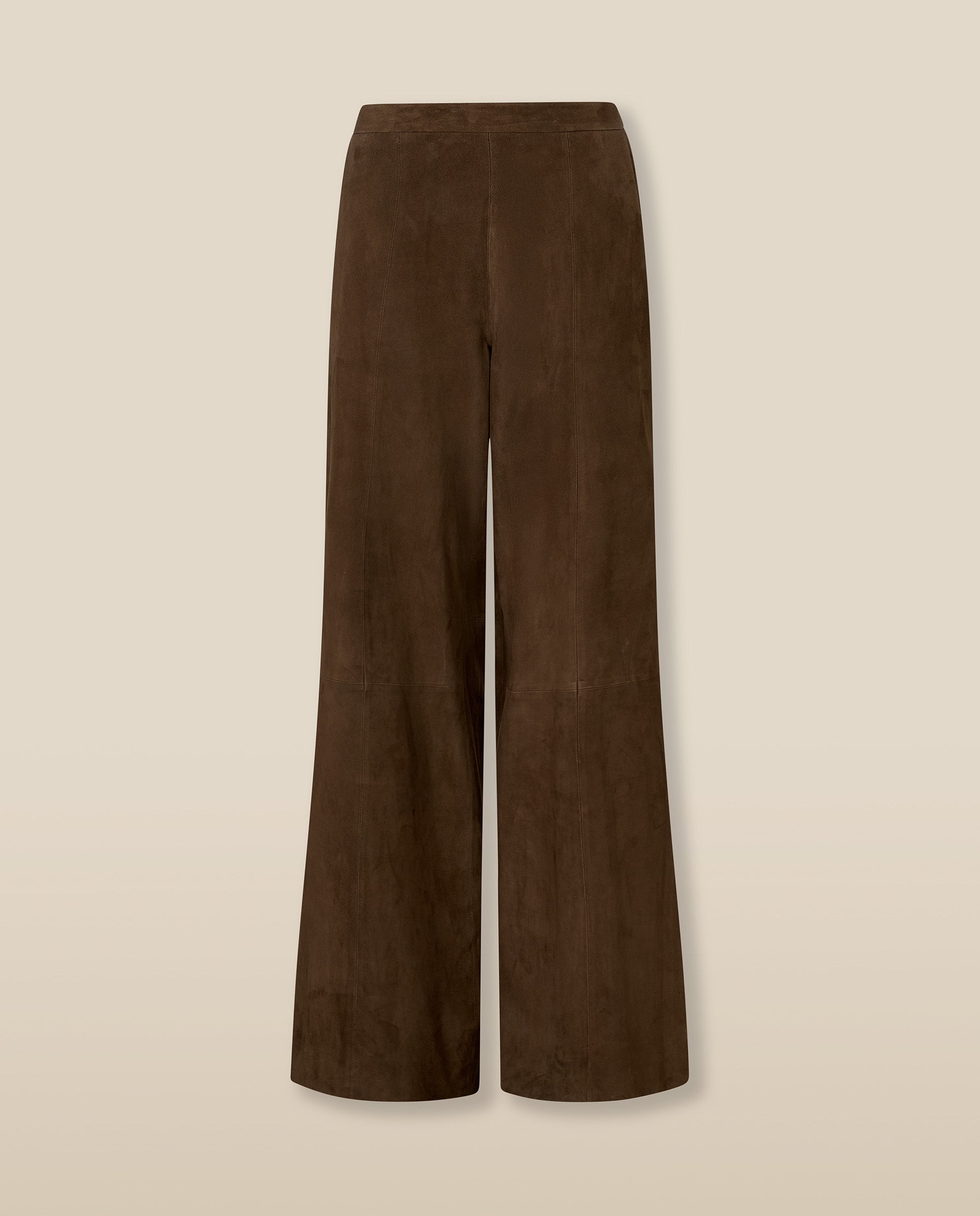 • High-waisted wide-leg trousers in dark brown suede