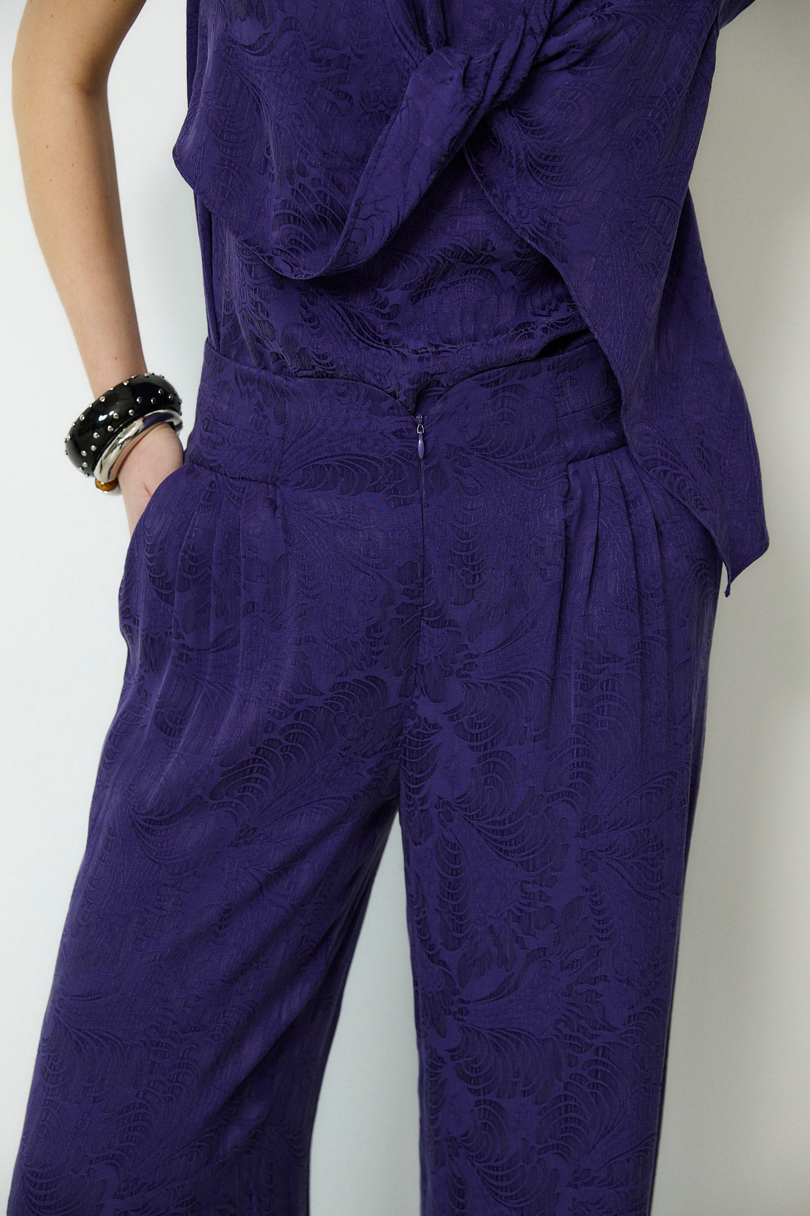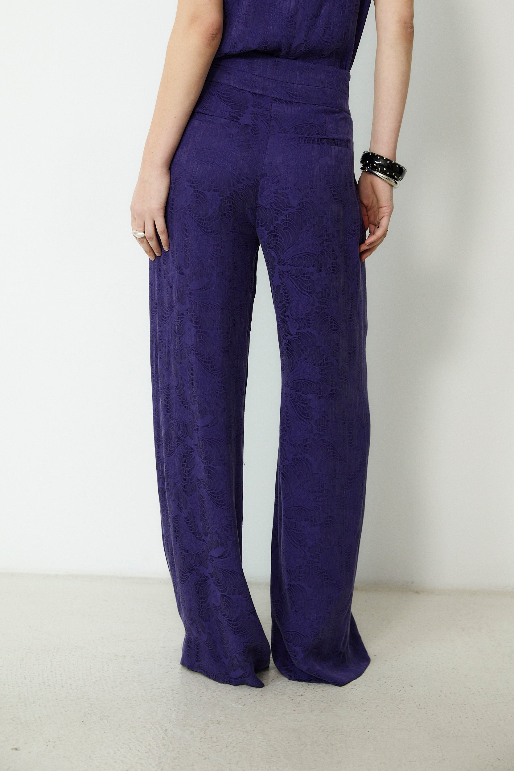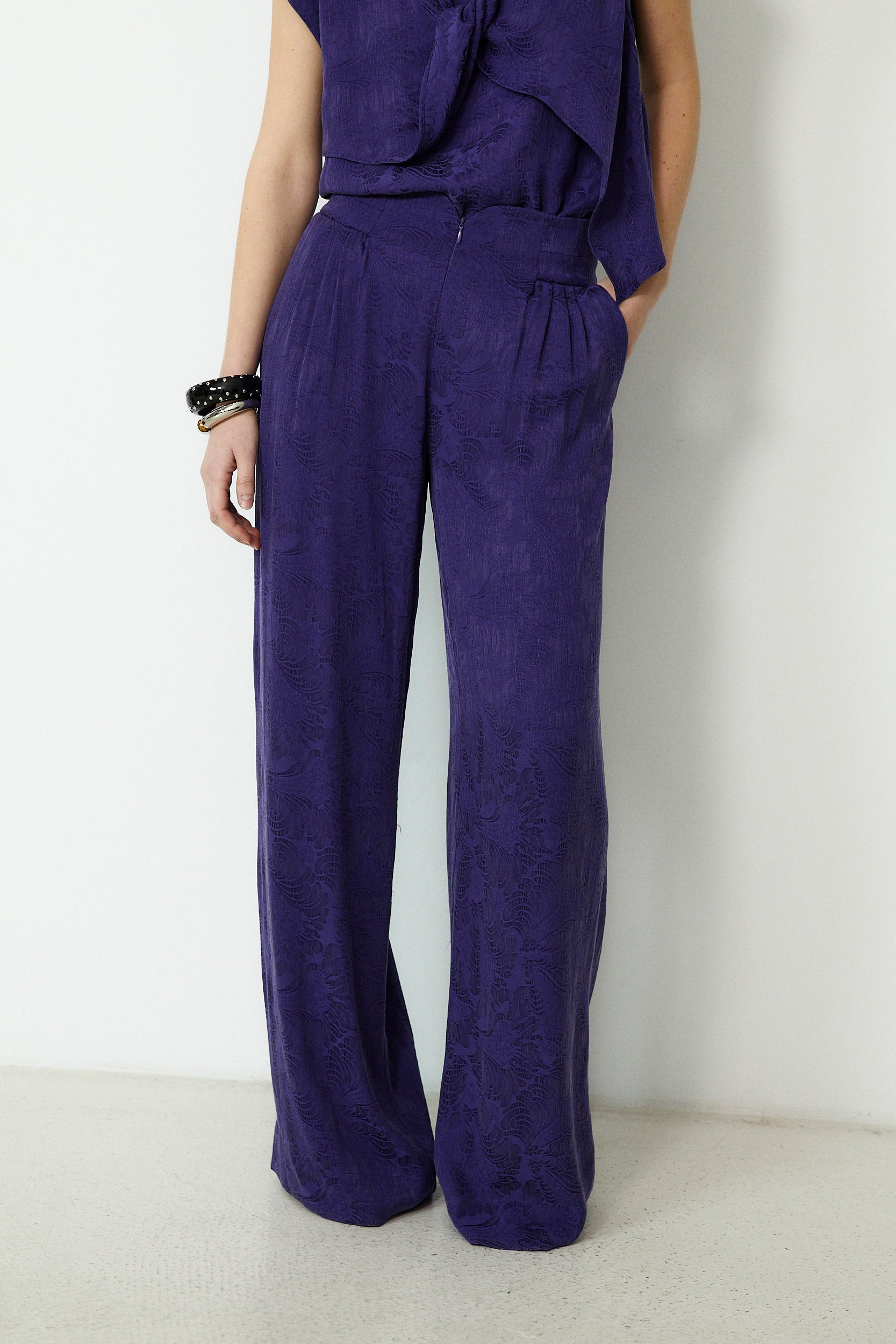 SULTANA | Dark Purple Tonal Jacquard Wide Leg Trousers