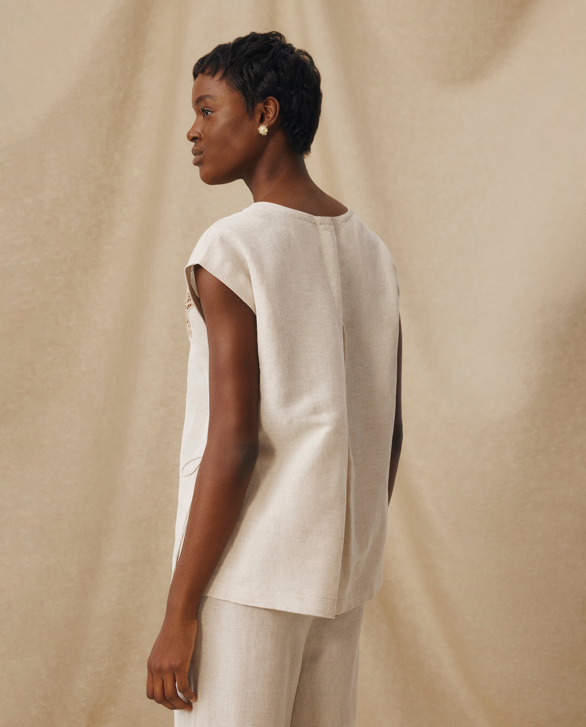 SOMA | Beige Embroidered Cotton-Linen Blouse
