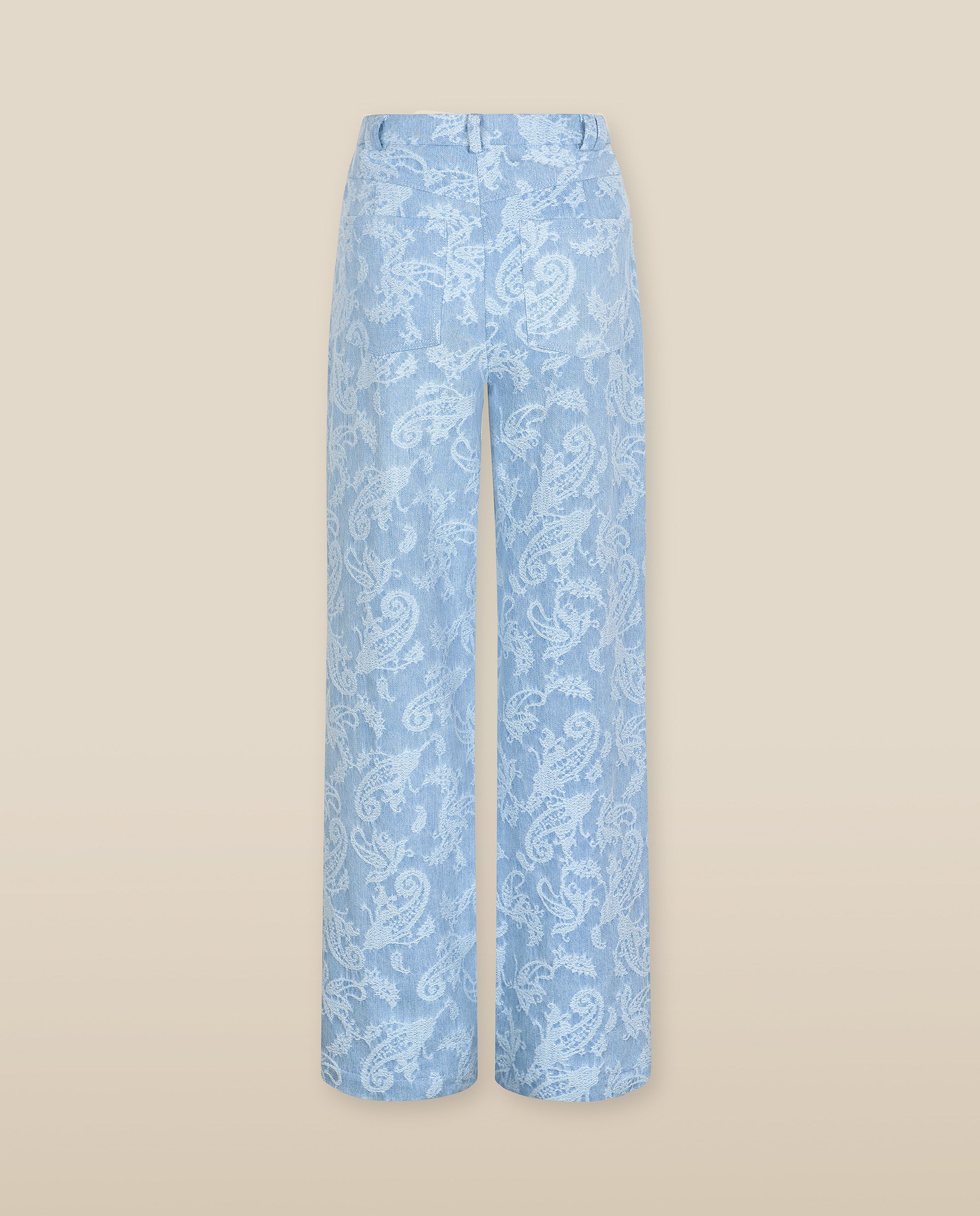 AARYA | Pantalones anchos de algodón con estampado paisley en azul denim pálido