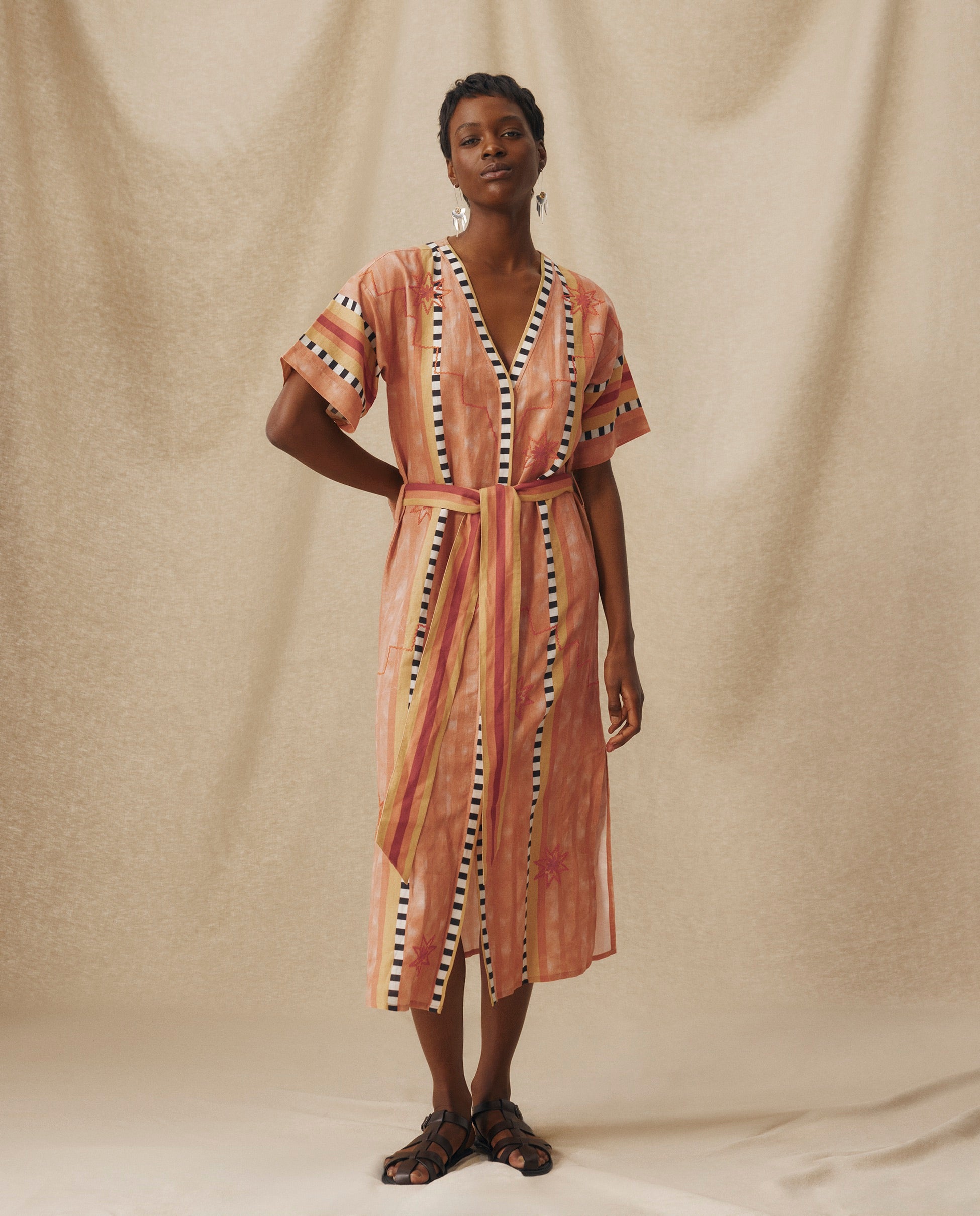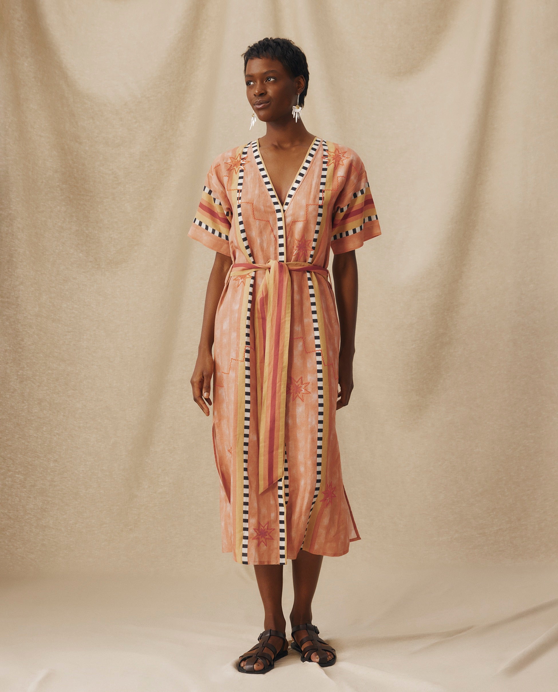 ANAKA | Túnica bordada en terracota con cinturón