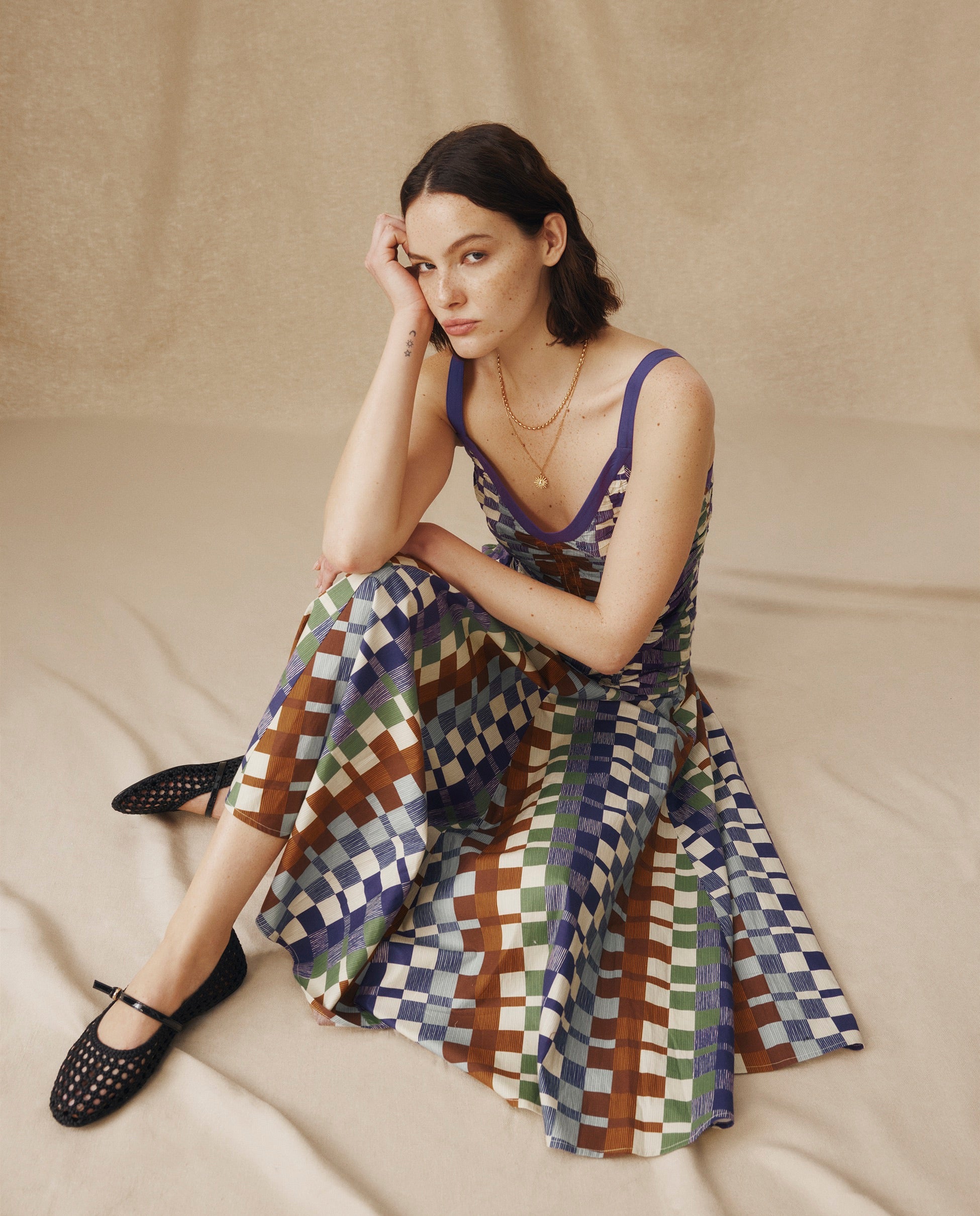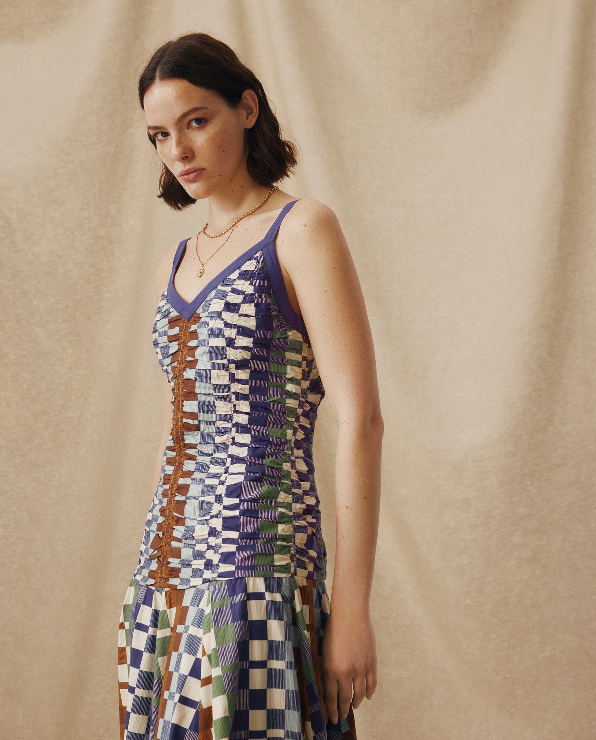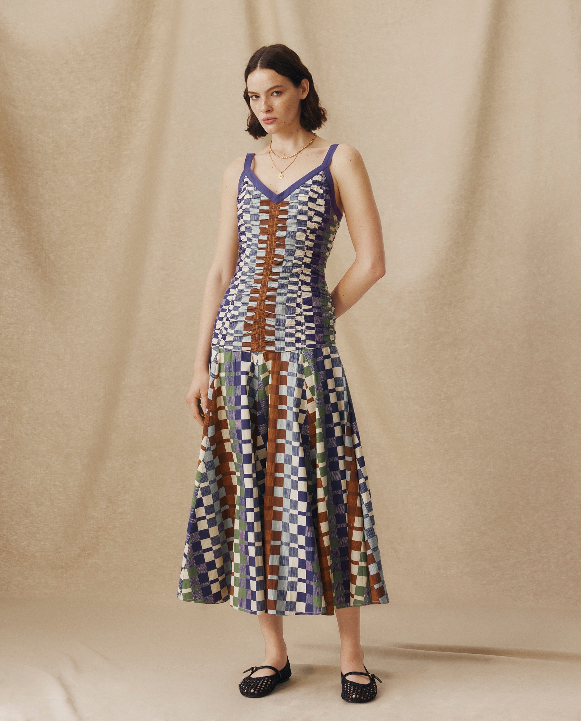 MORINAL | Vestido midi de algodón con estampado geométrico y cintura baja