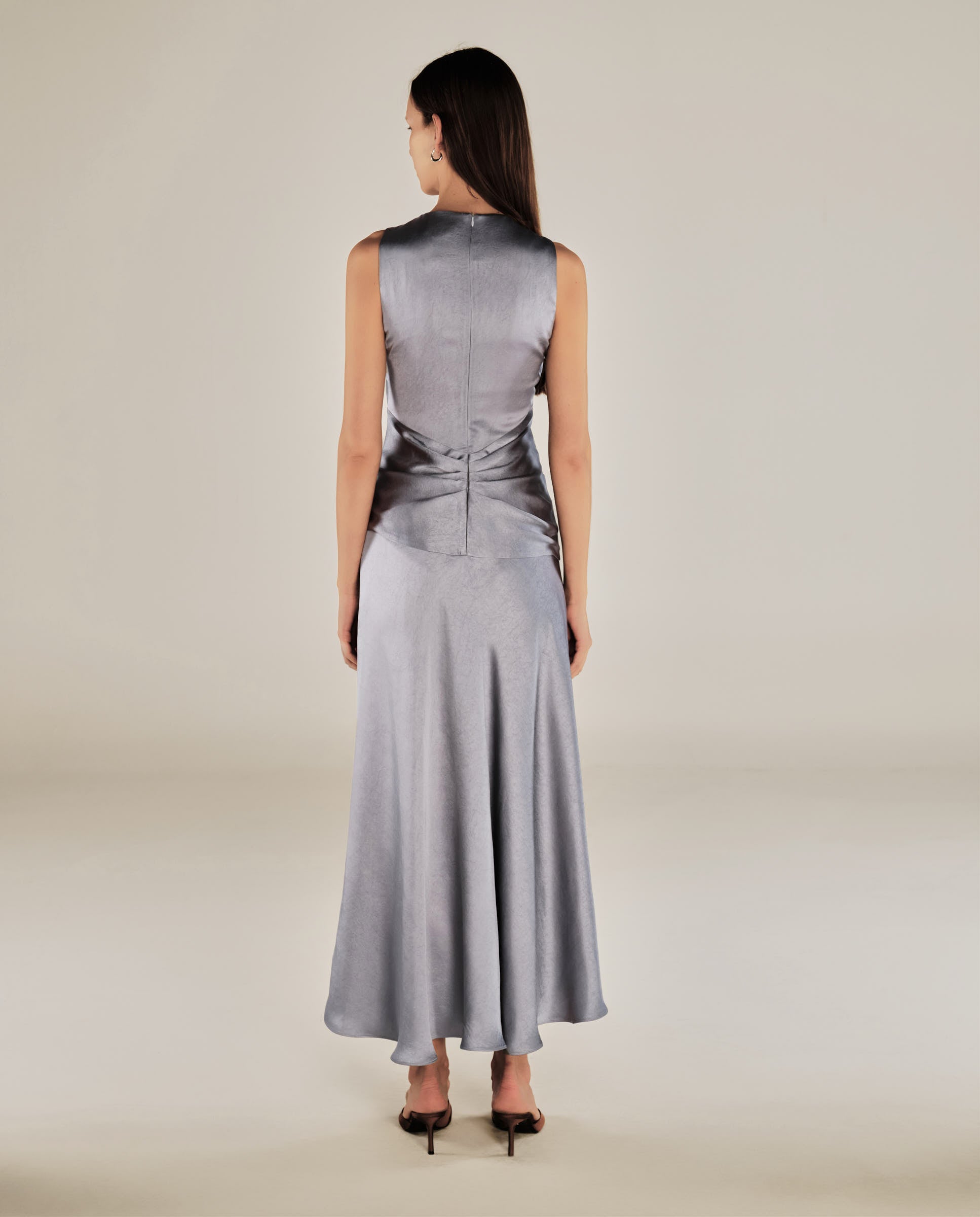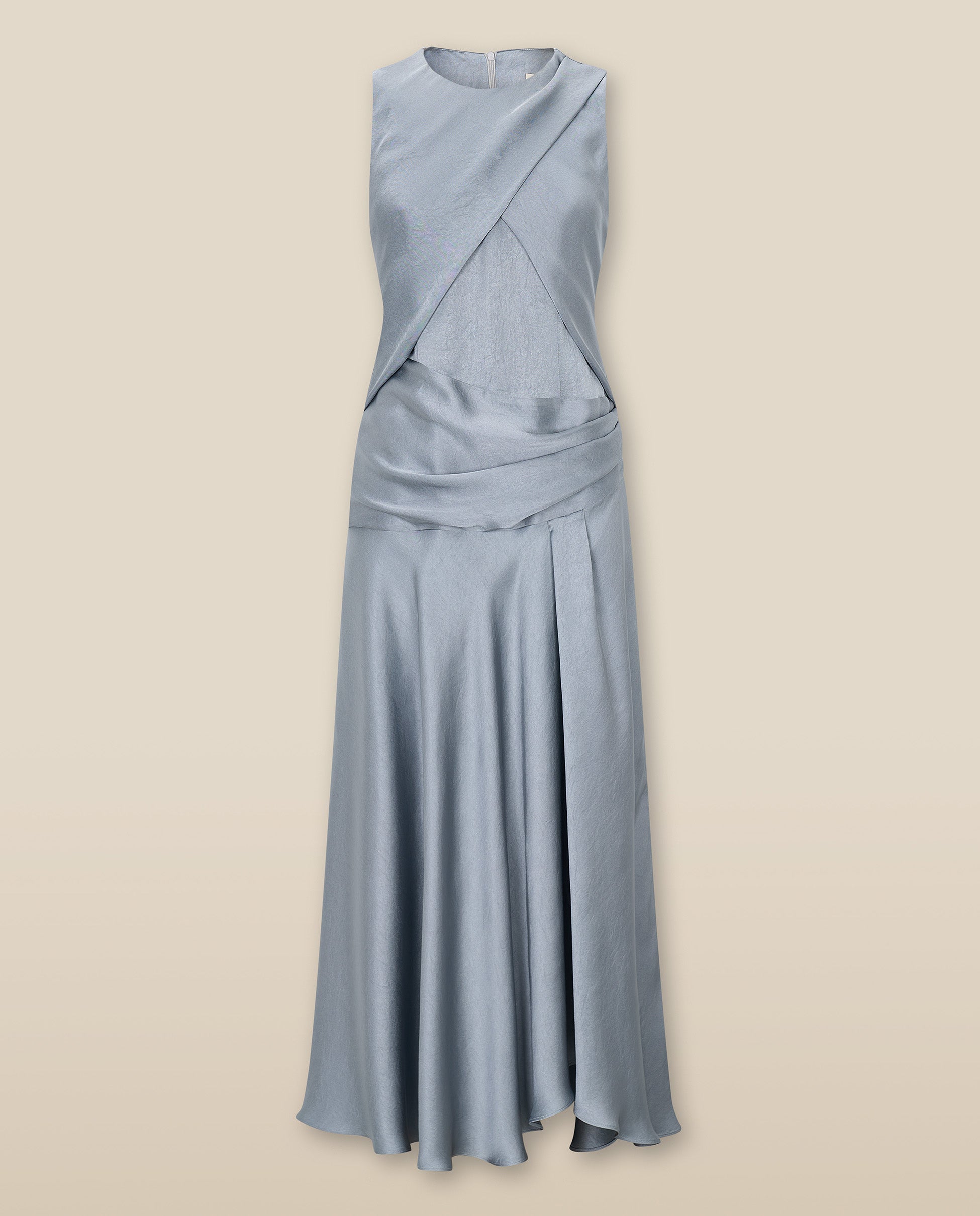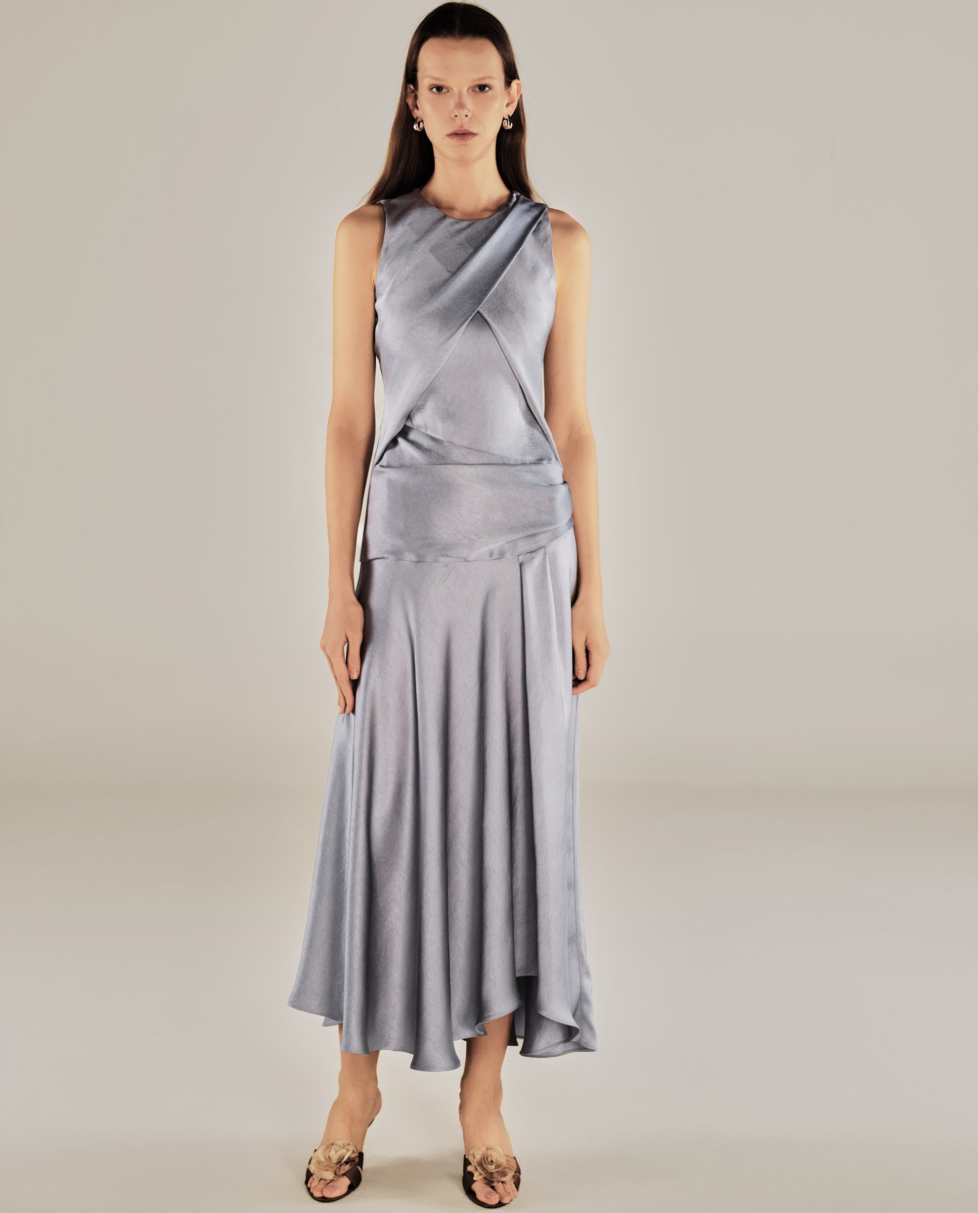CAROLINA | Vestido drapeado con pinceladas carmesí