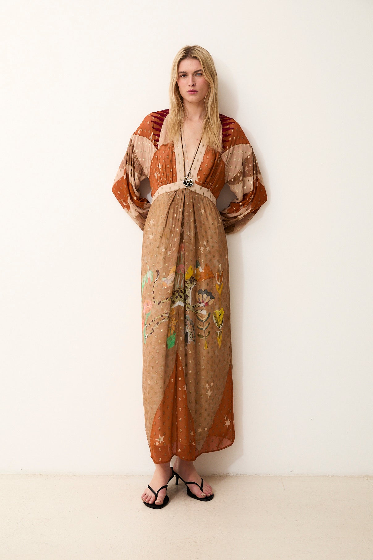 • Silueta fluida con escote en V y mangas largas
