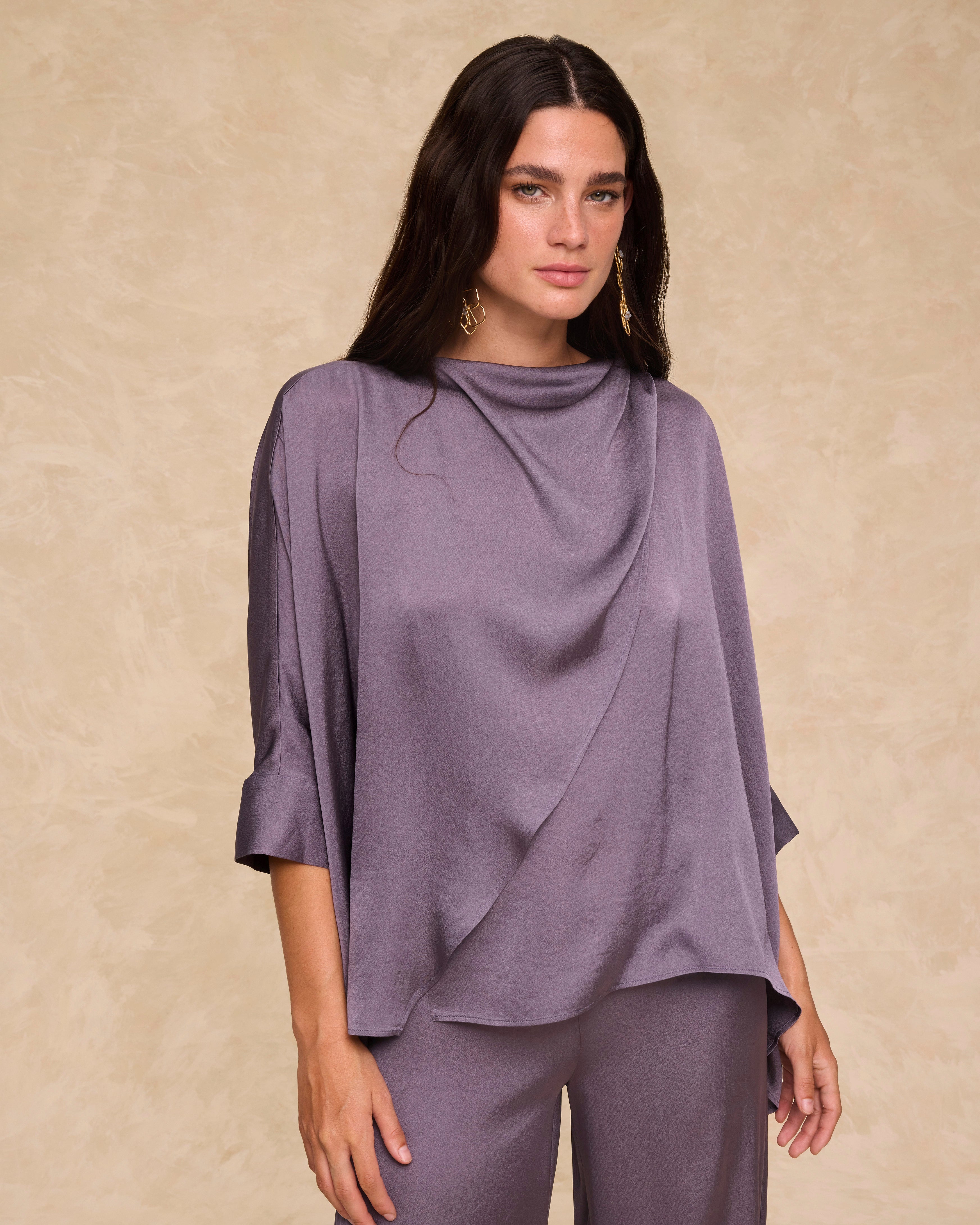TIRSO | Blusa drapeada color uva suave
