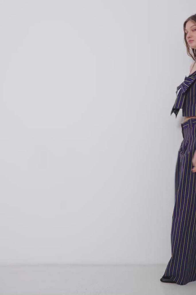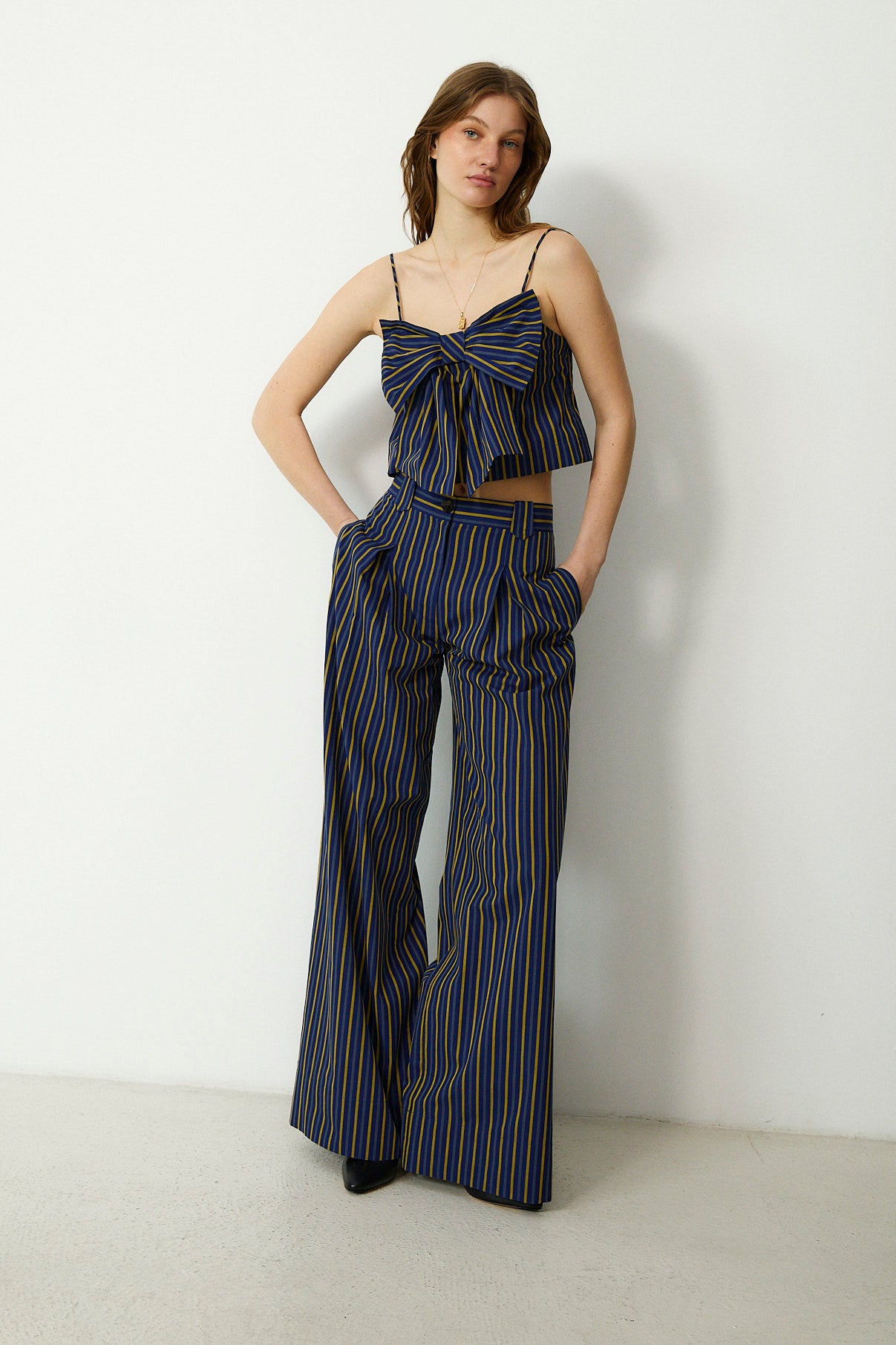 PALMI | Blue Striped Italian Cotton Wide-Leg Trousers