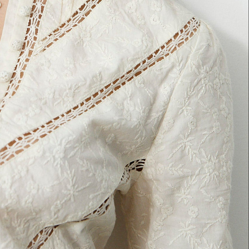VAULT | Camel Embroidered Cotton Linen Blouse