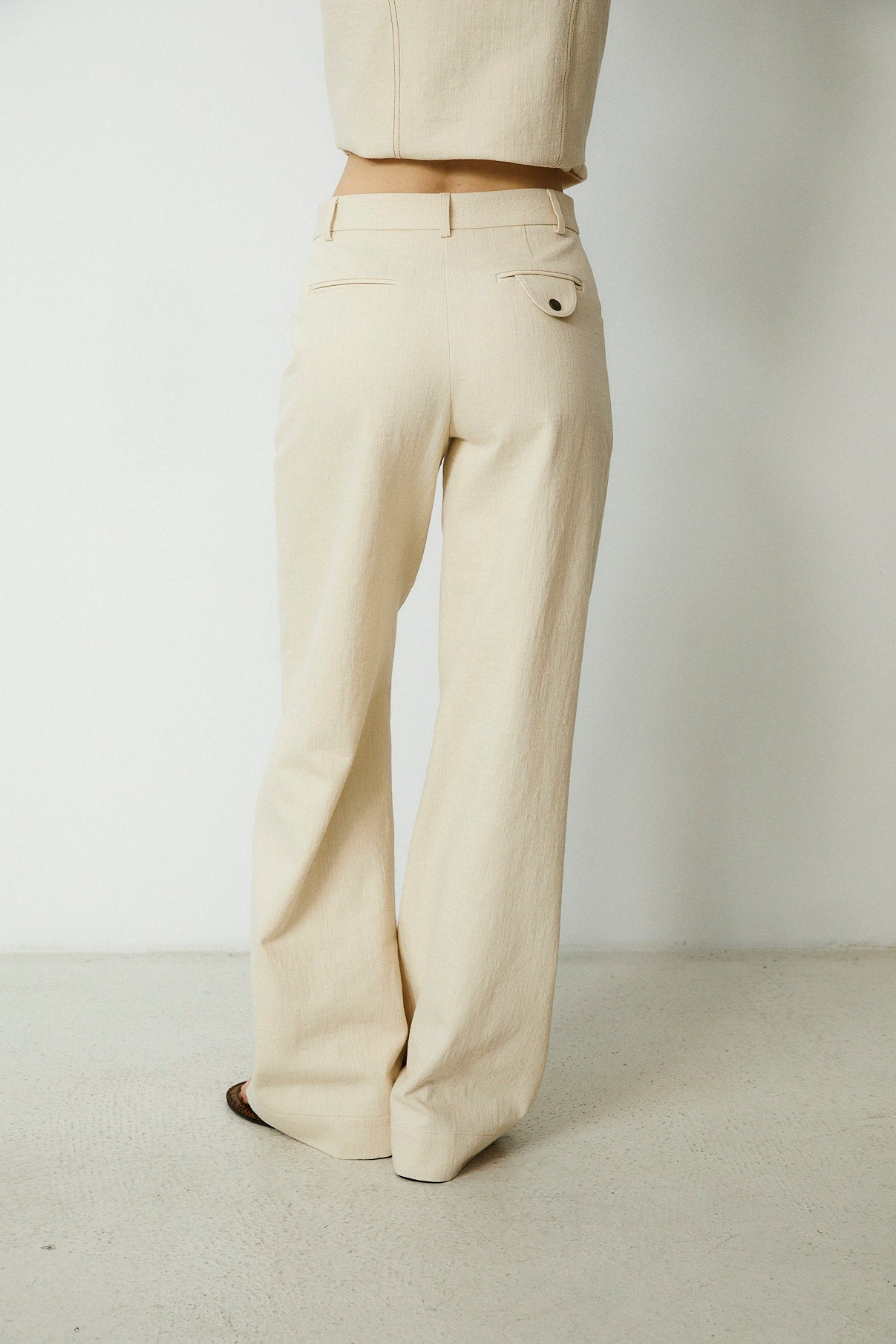 FRILLY | Ecru Italian Cotton Linen Trousers