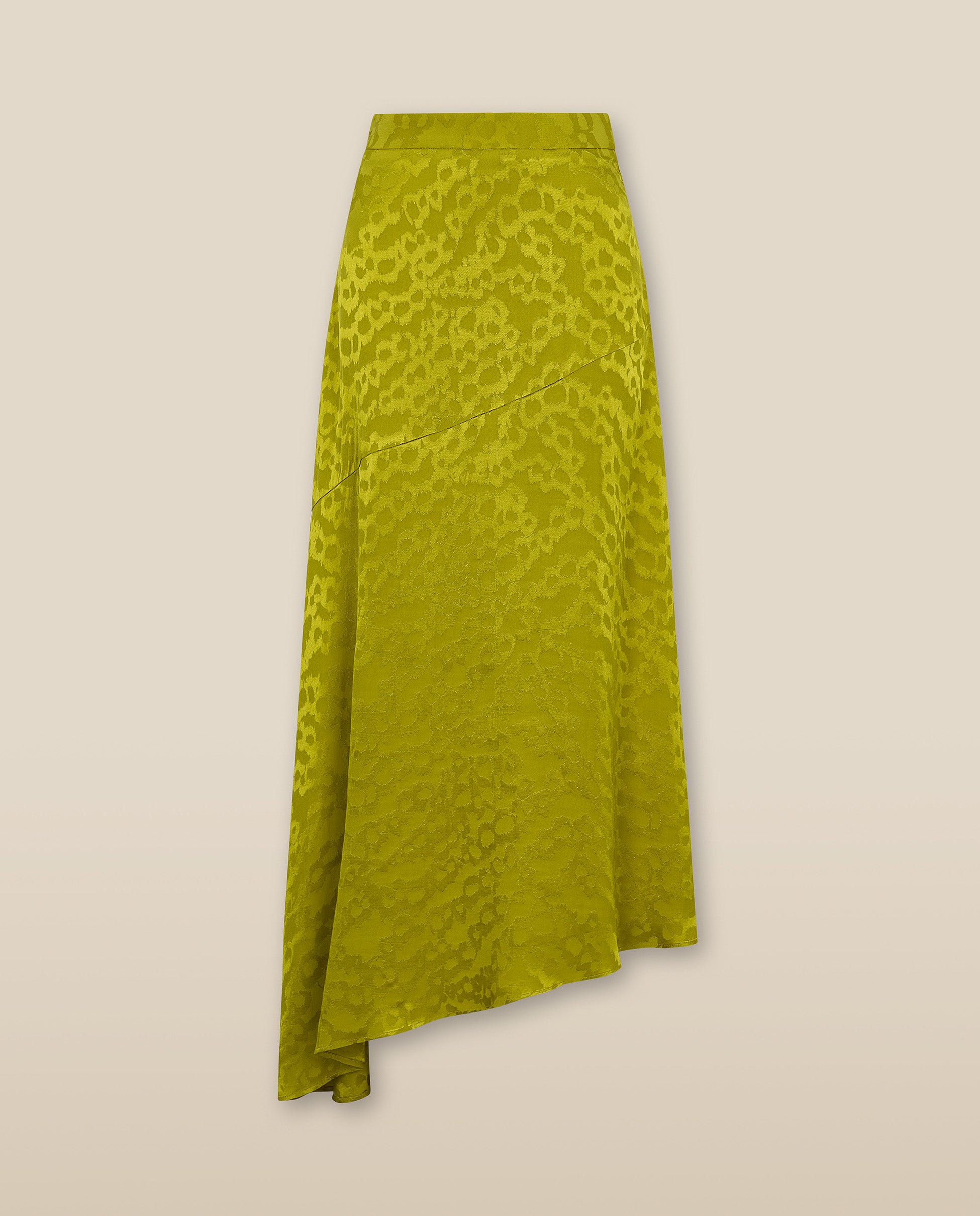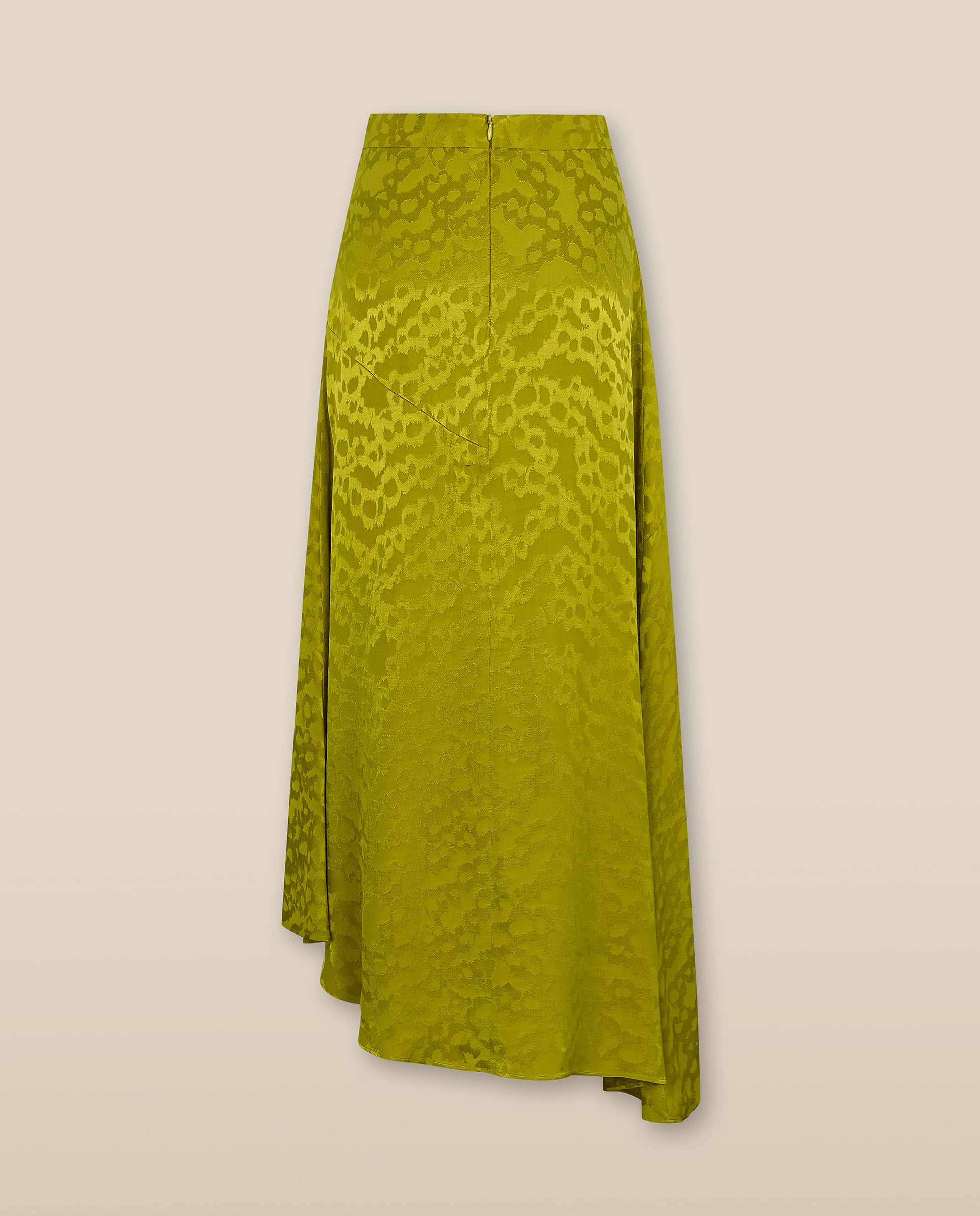 BHAKTI | Chartreuse Yellow Jacquard Leopard Print Asymmetric Skirt