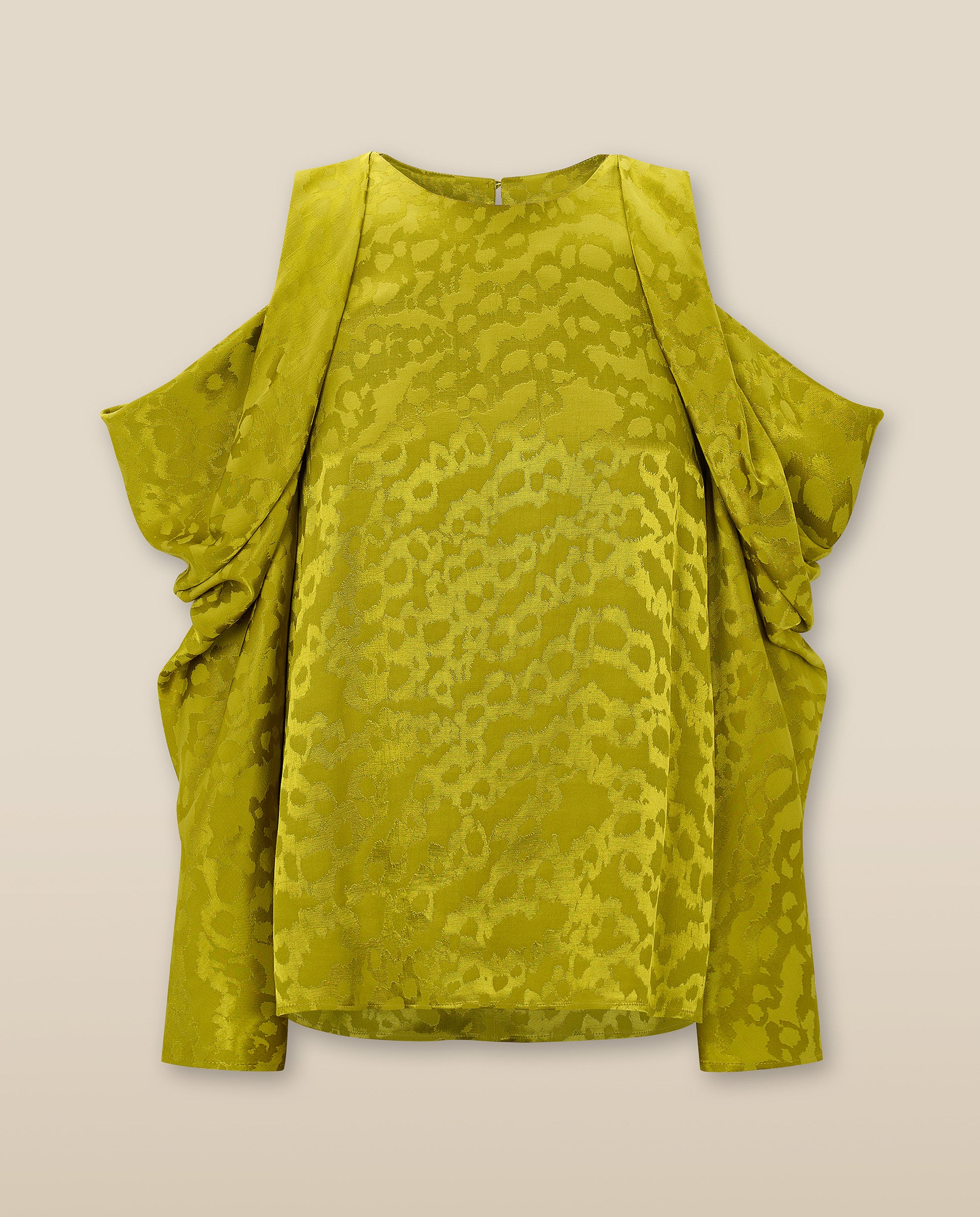 BHAKTI | Chartreuse Yellow Jacquard Leopard Print Blouse