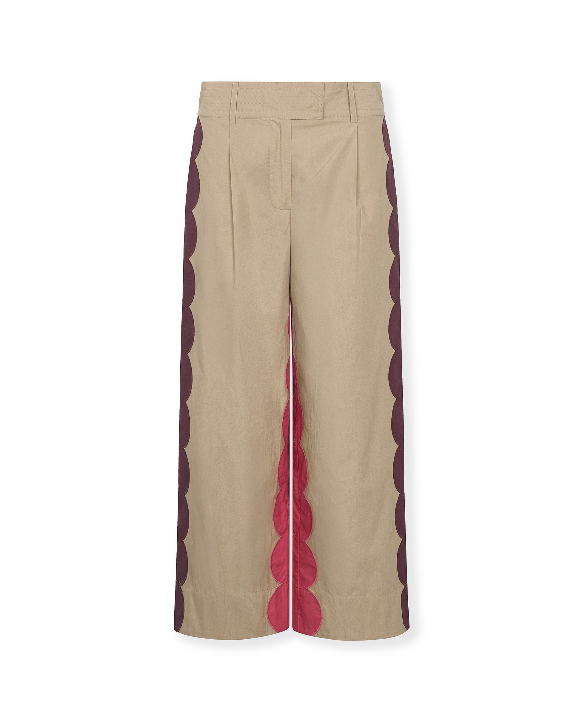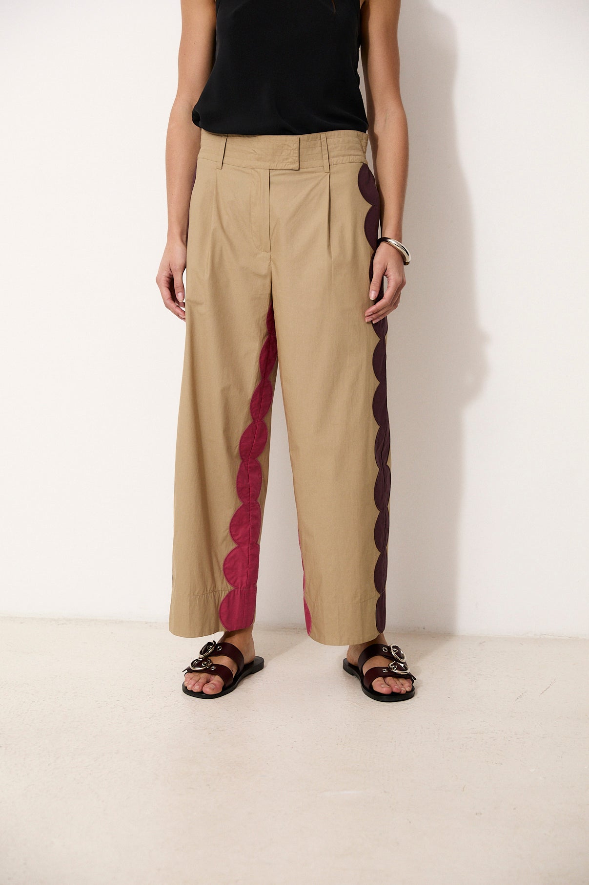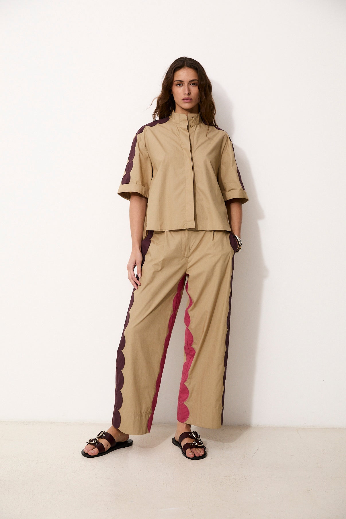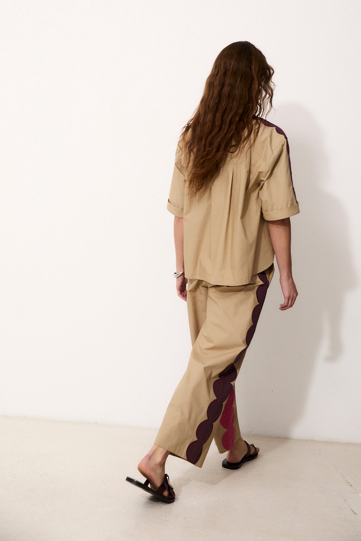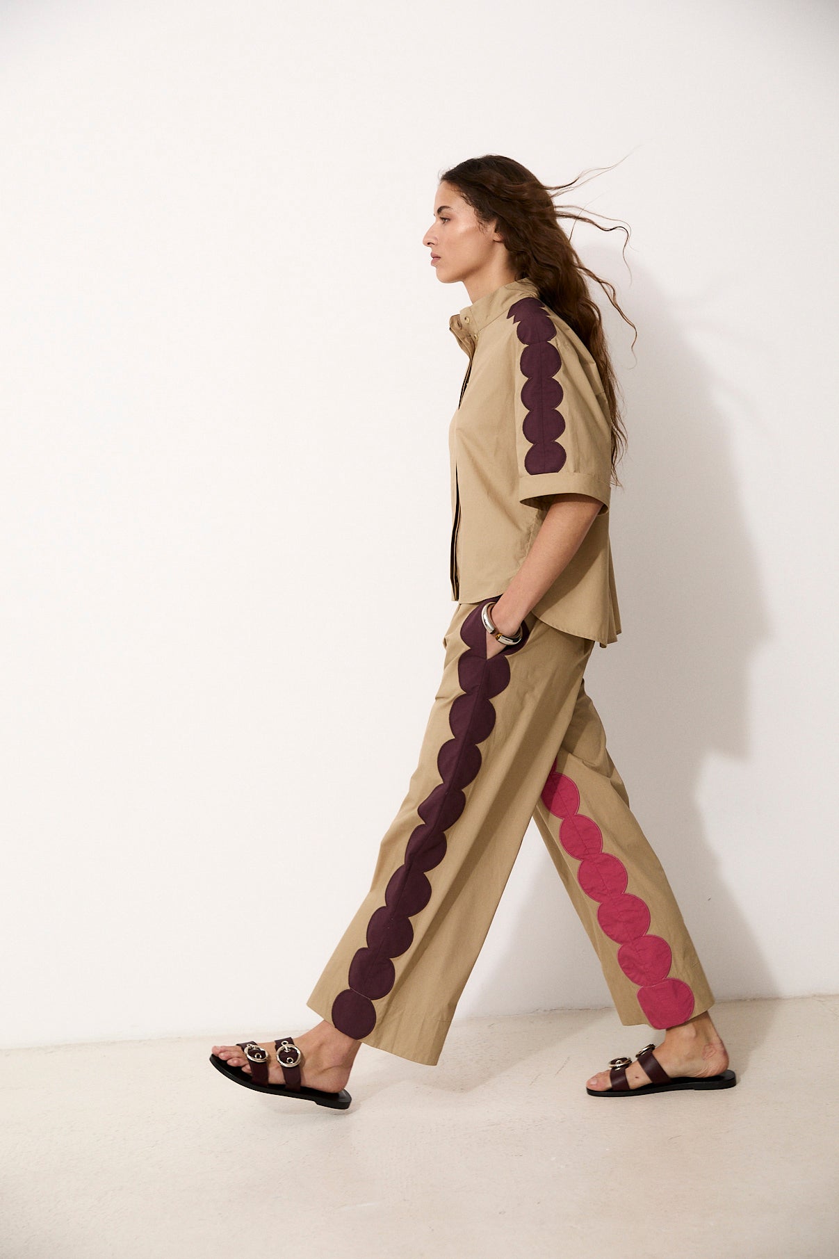 The Candy trousers combine comfort and design in a relaxed, contemporary silhouette. Crafted from 100% cotton, they stand out for their hand-embroidered detail, a careful artisanal process that takes approximately 2 hours per garment. The structured waistband and wide leg create a balance between functionality and style. A versatile piece that pairs perfectly with the matching Candy blouse for a coordinated set.