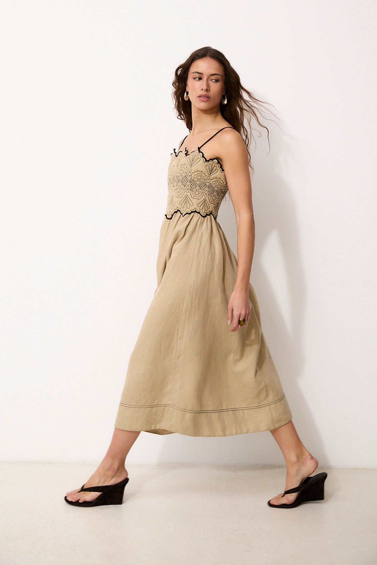 JUNA | 100% Linen Ecru Midi Dress