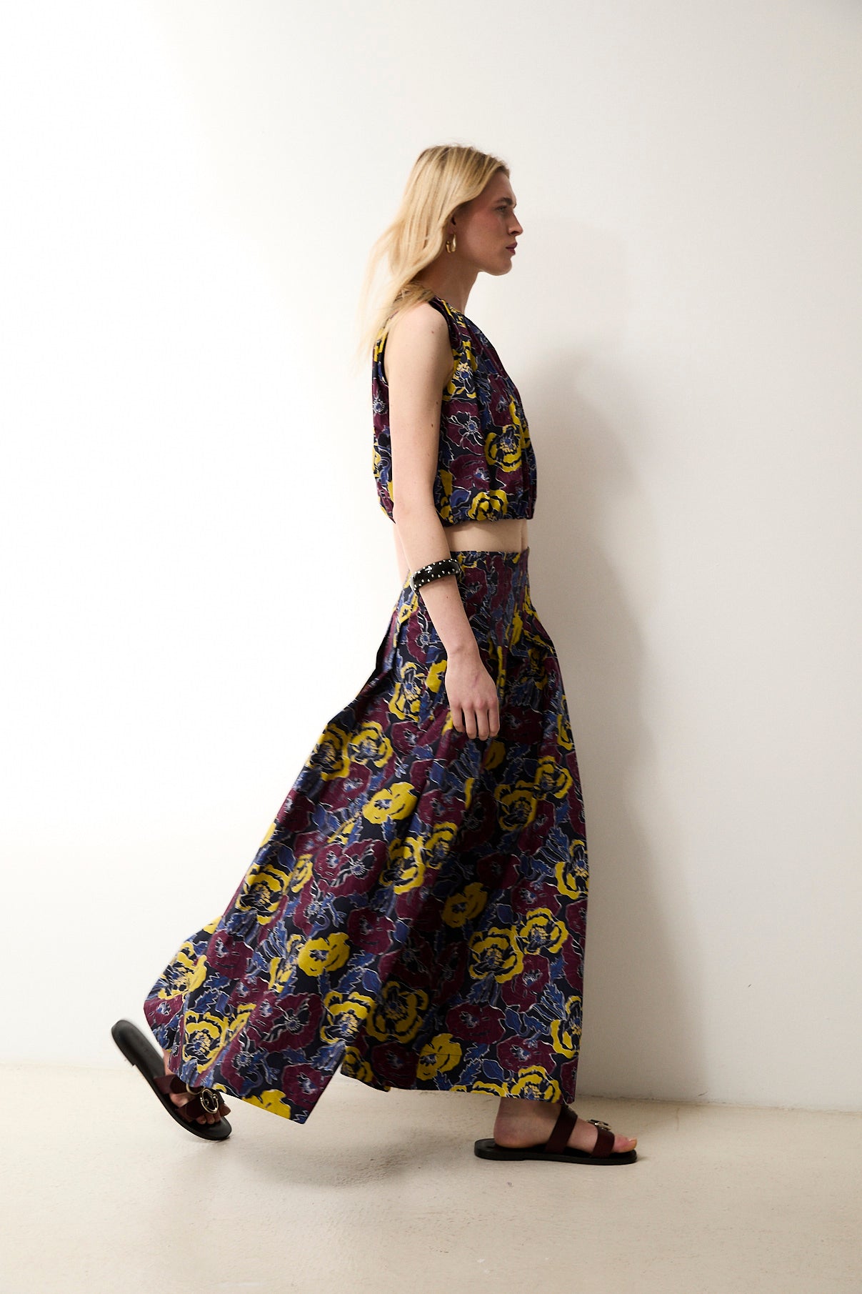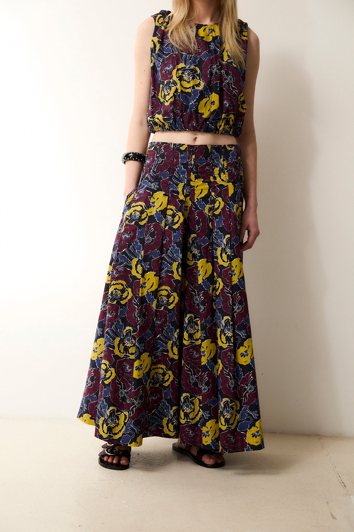 The Morris trousers bring freshness and character to any look with their vibrant floral print. Crafted from 100% cotton, they feature a wide, fluid silhouette that offers comfort and movement. The structured waistband and light drape make them a versatile everyday piece. Pair them with the matching Morris top for a coordinated and striking set.