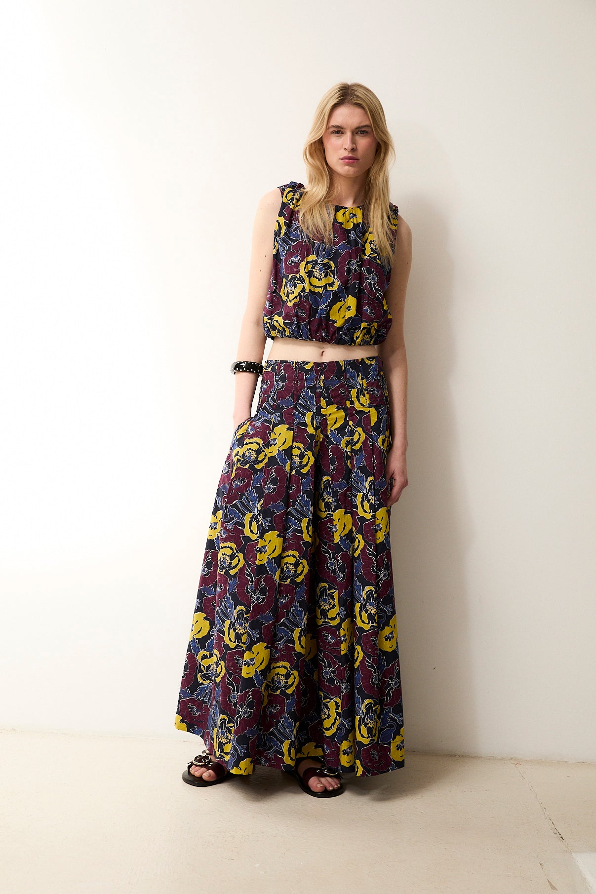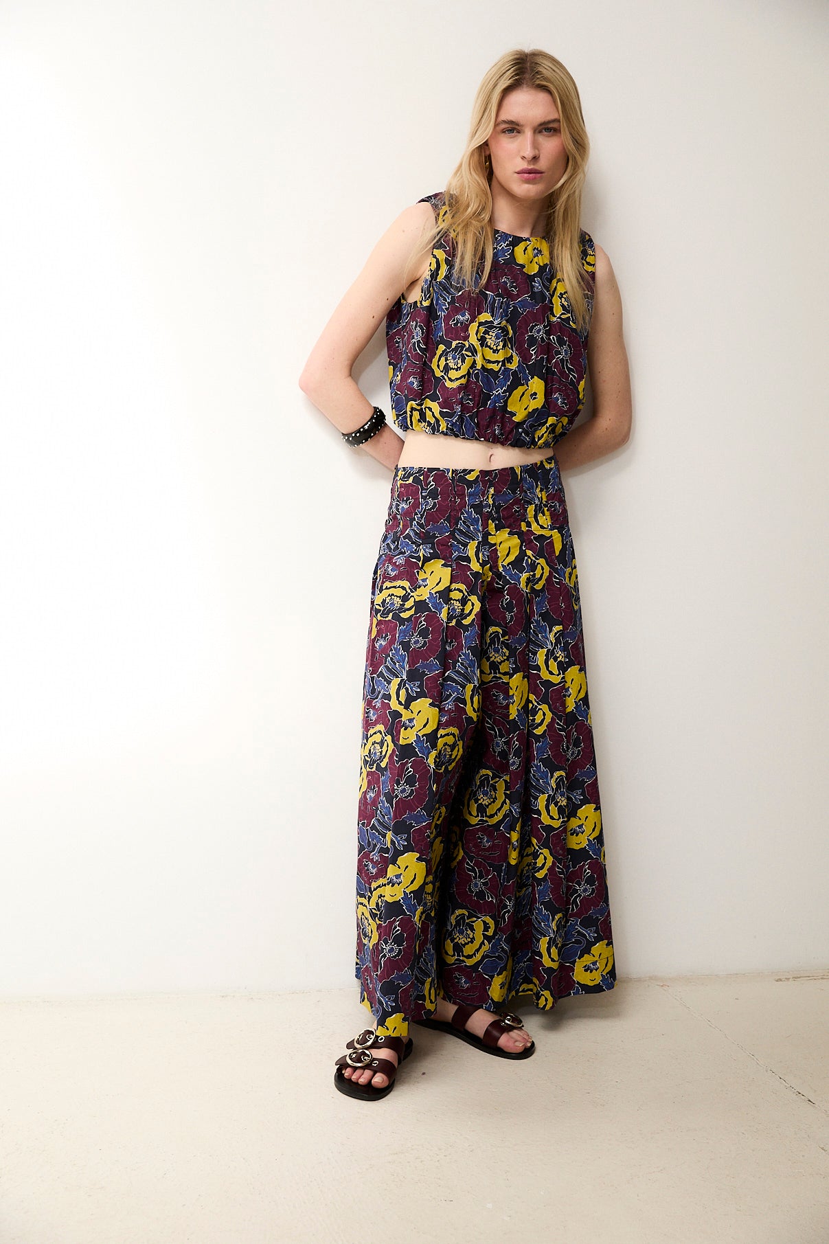 The Morris top blends freshness and colour in a simple, versatile silhouette. Crafted from 100% cotton, it stands out for its vibrant floral print that adds character to any look. The sleeveless design and relaxed cut make it a light and comfortable piece for warmer days. Pair it with the matching Morris trousers for a coordinated and stylish set.