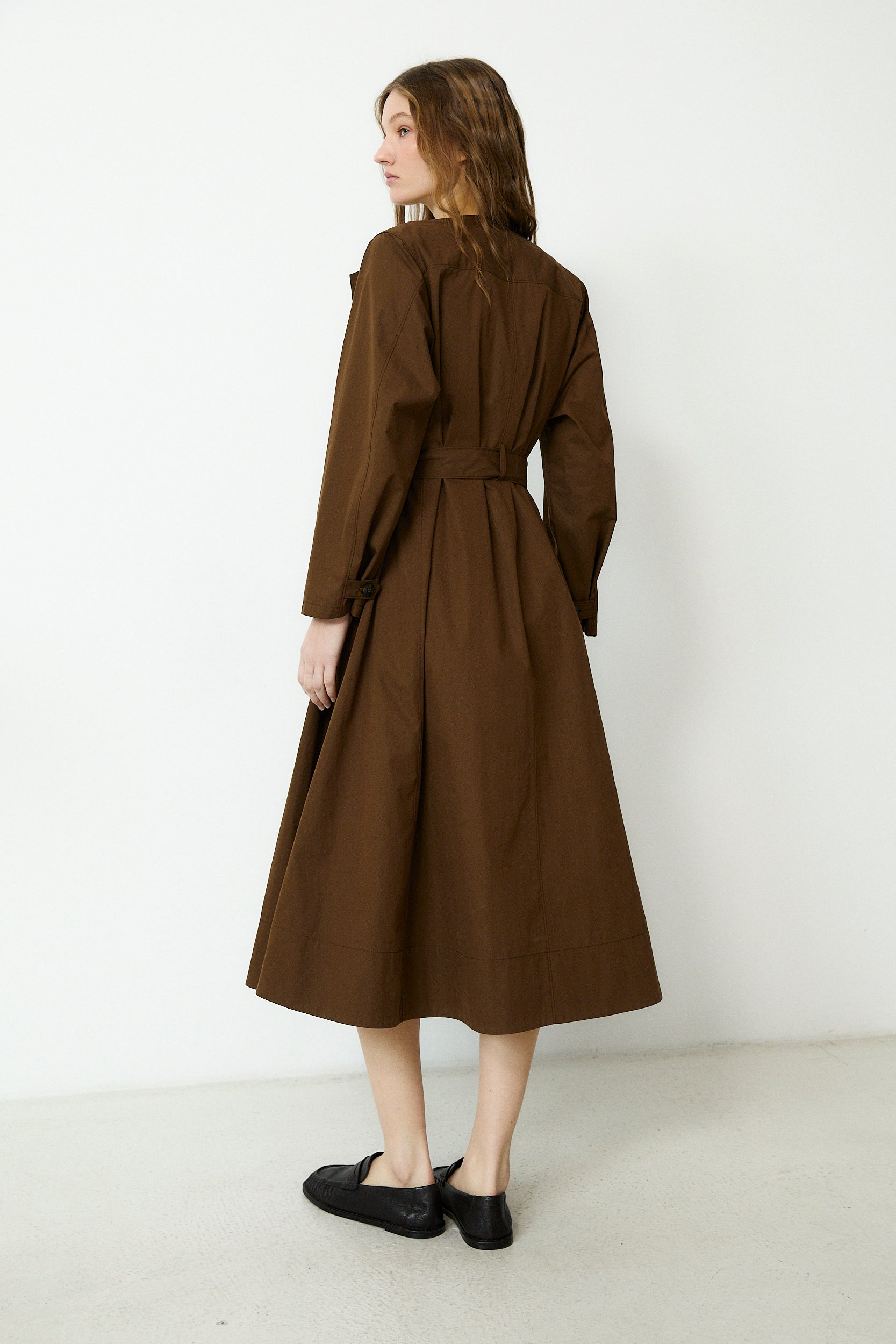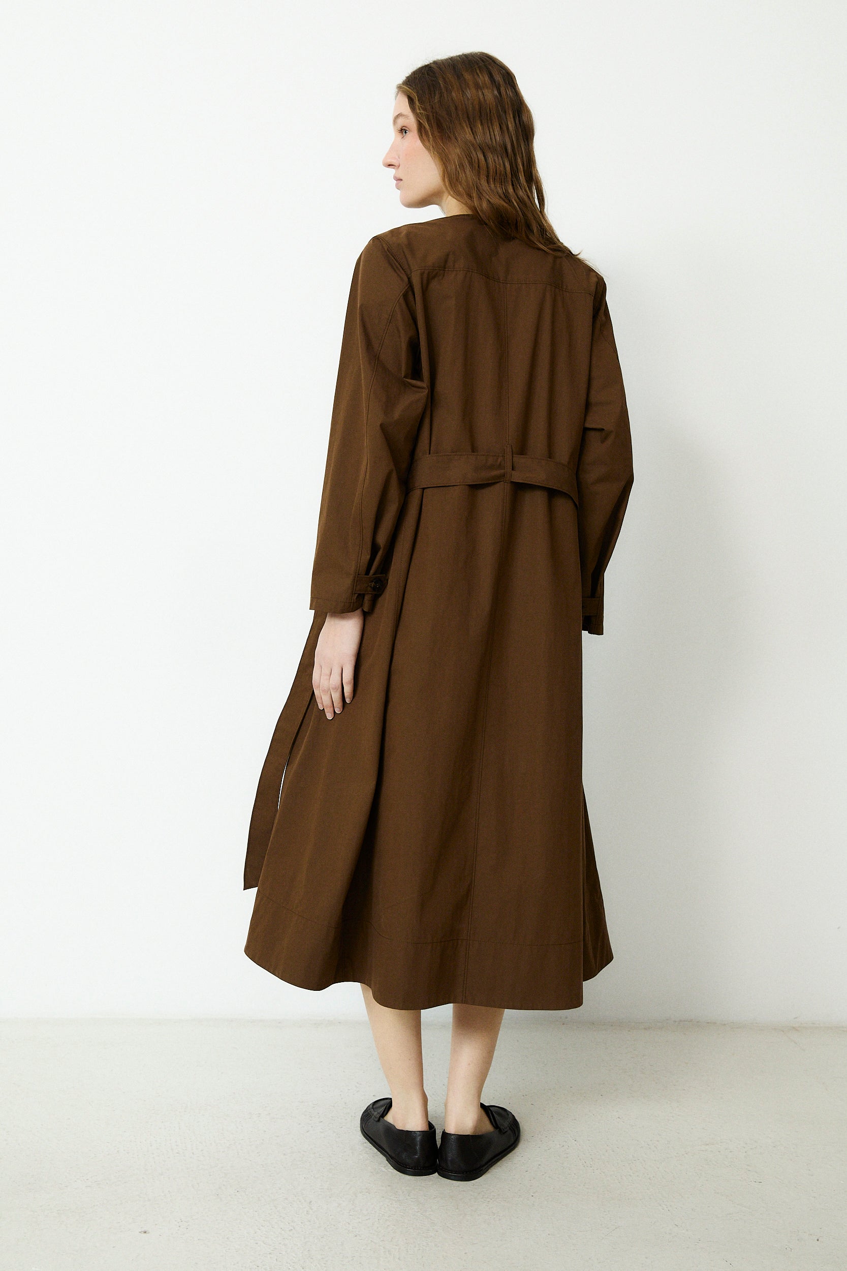 Refined and versatile, the Ofelia trench coat is crafted in a smooth cotton blend with a clean, structured drape. Designed with a classic wrap silhouette, it features a wide lapel, adjustable waist belt and practical side pockets for everyday ease. Unlined for a lighter feel, it is a timeless outerwear piece that transitions effortlessly between seasons.