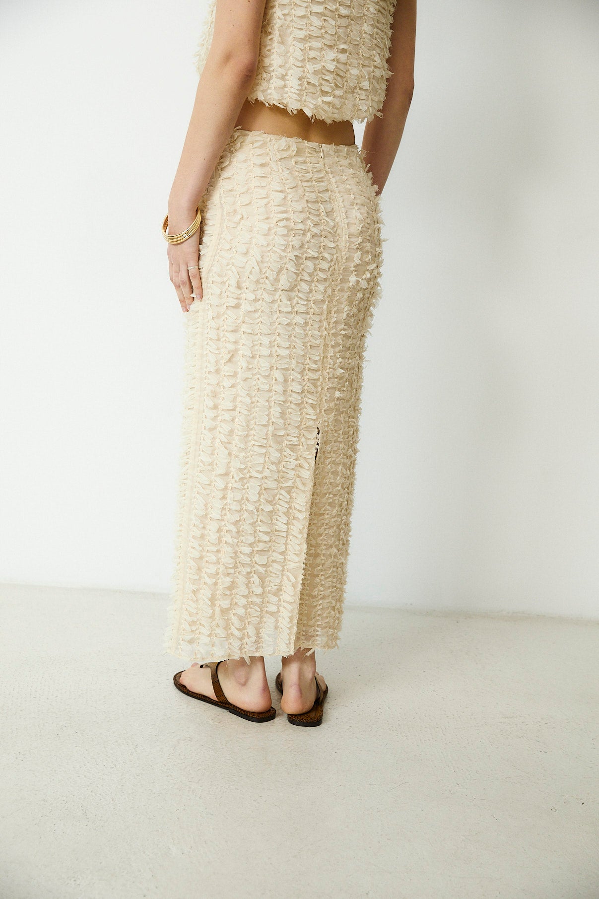 RICAMO | Ecru Textured Midi Skirt