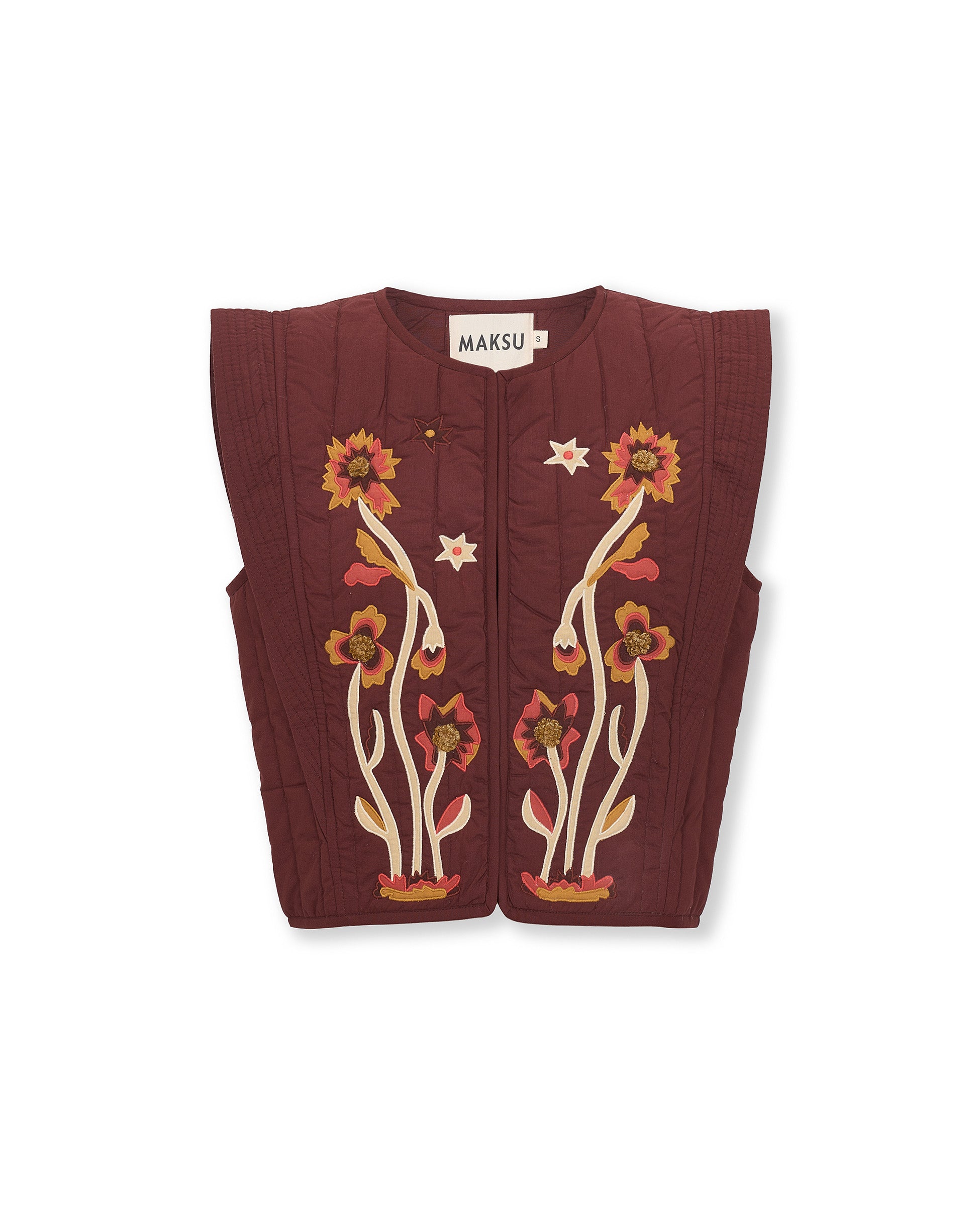 VEGA | Brown Appliqué Quilted Cotton Vest
