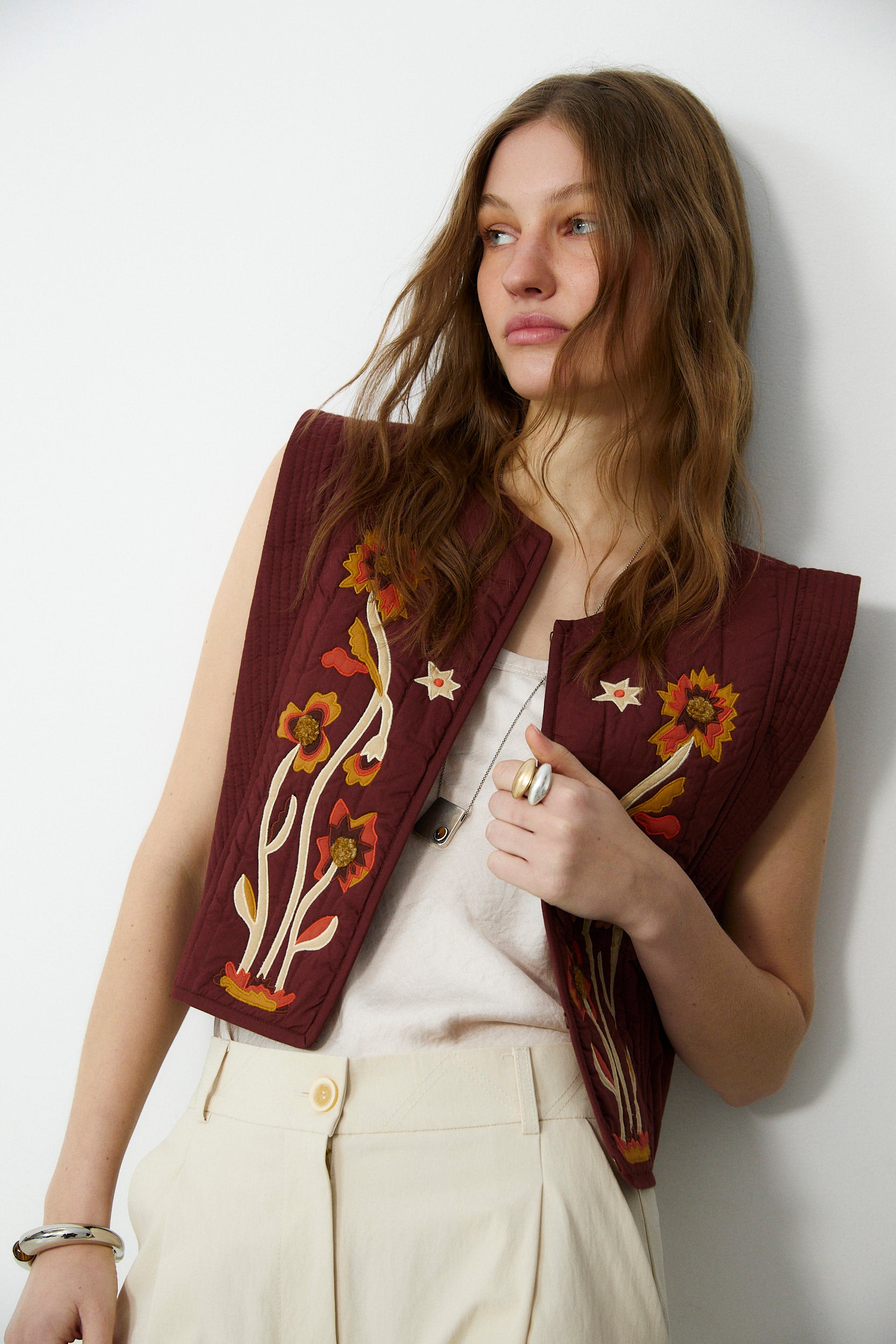An expressive take on warm-weather dressing, the Emma Dress is cut from lightweight cotton and intricately embroidered with vibrant floral motifs. The scalloped sweetheart bodice and delicate cut-outs add a sense of romantic structure, while a softly pleated skirt brings ease and movement. Finished with adjustable straps and a concealed side zip for a seamless fit.