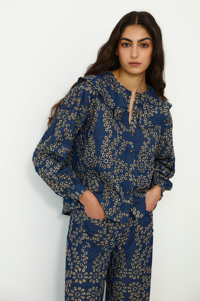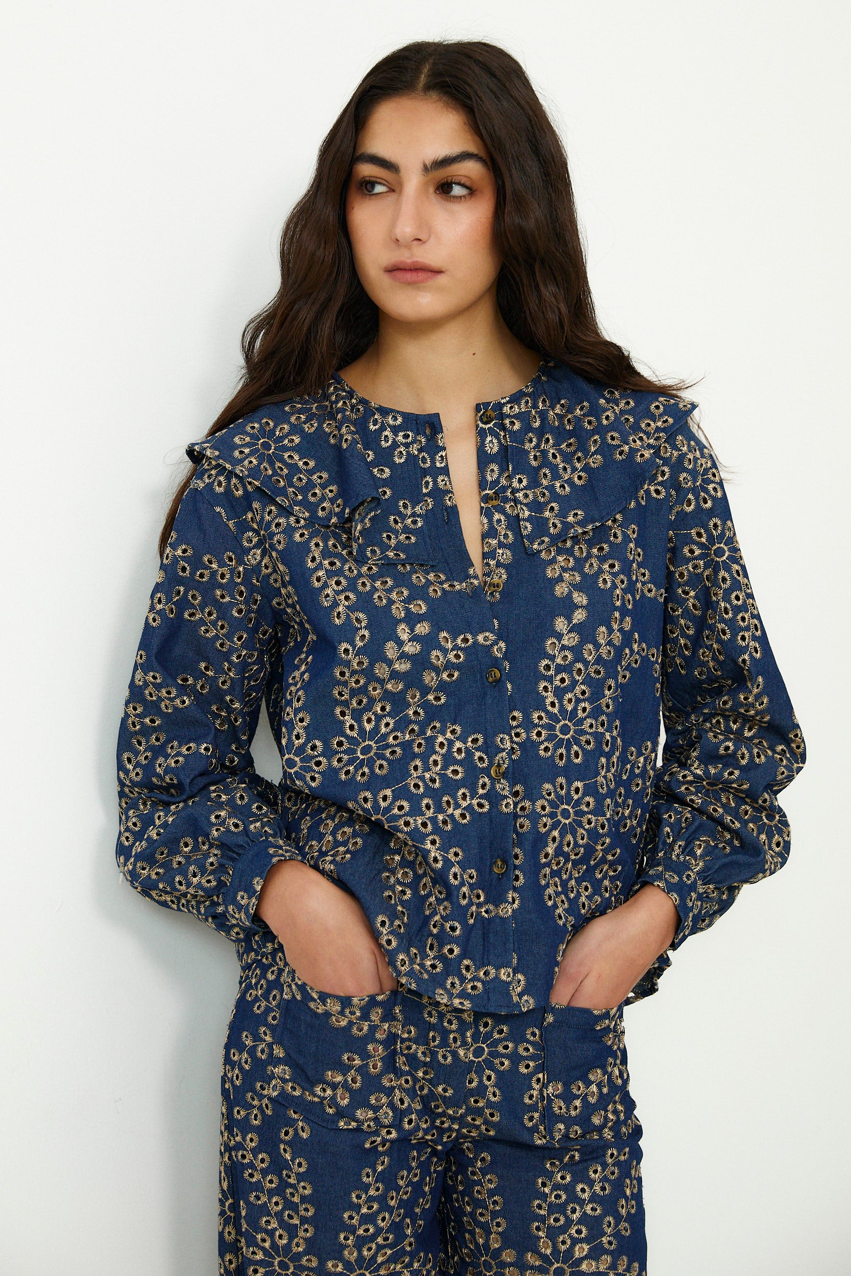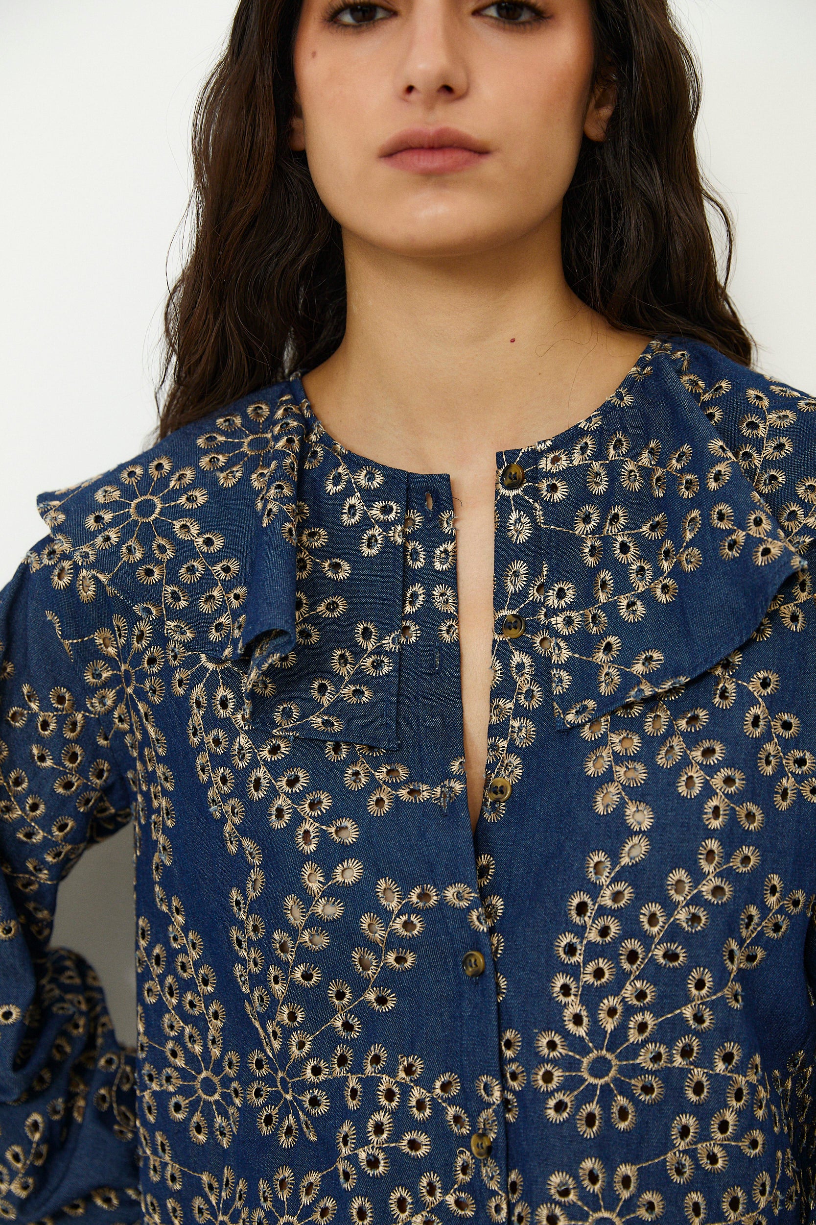 EMMA | Teal Blue Floral Embroidered Cotton Midi Dress