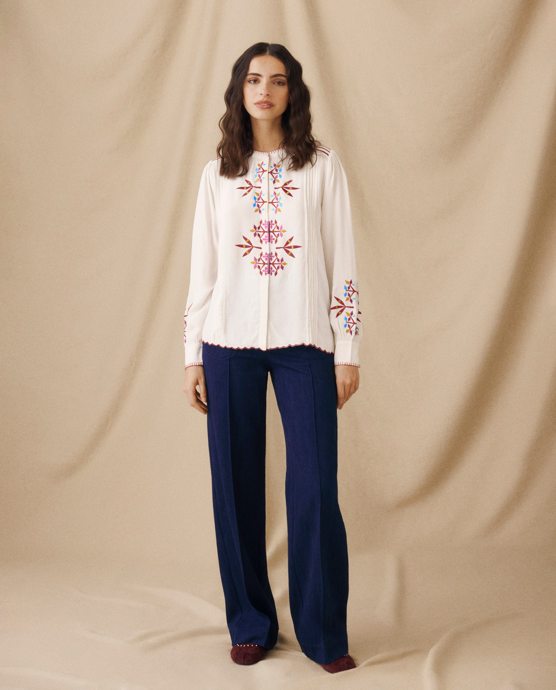 Shop MAKSU’s collection of designer blouses and tops featuring silk and satin blouses, embroidered cotton styles and modern jersey pieces. Crafted from luxurious fabrics with refined detailing, each piece blends day-to-night elegance with timeless sophistication.