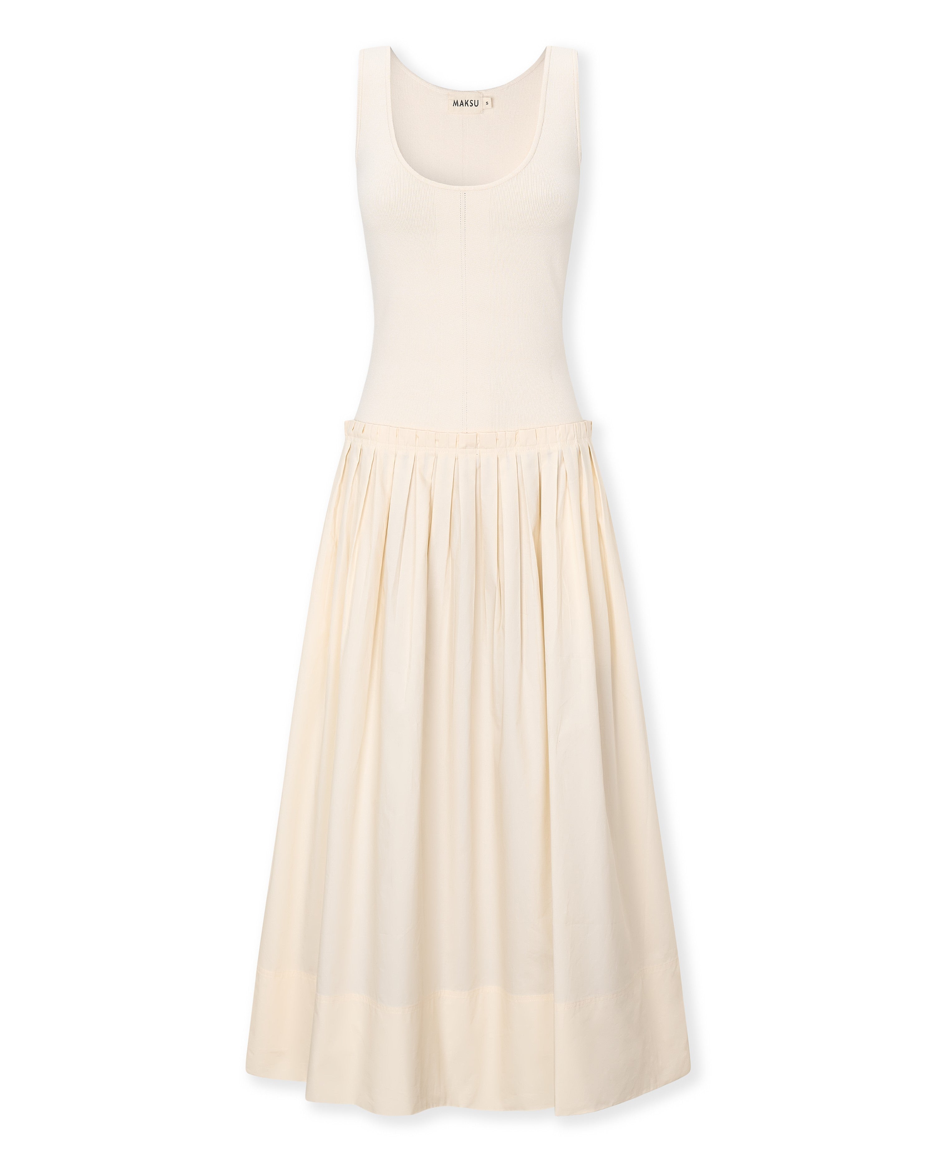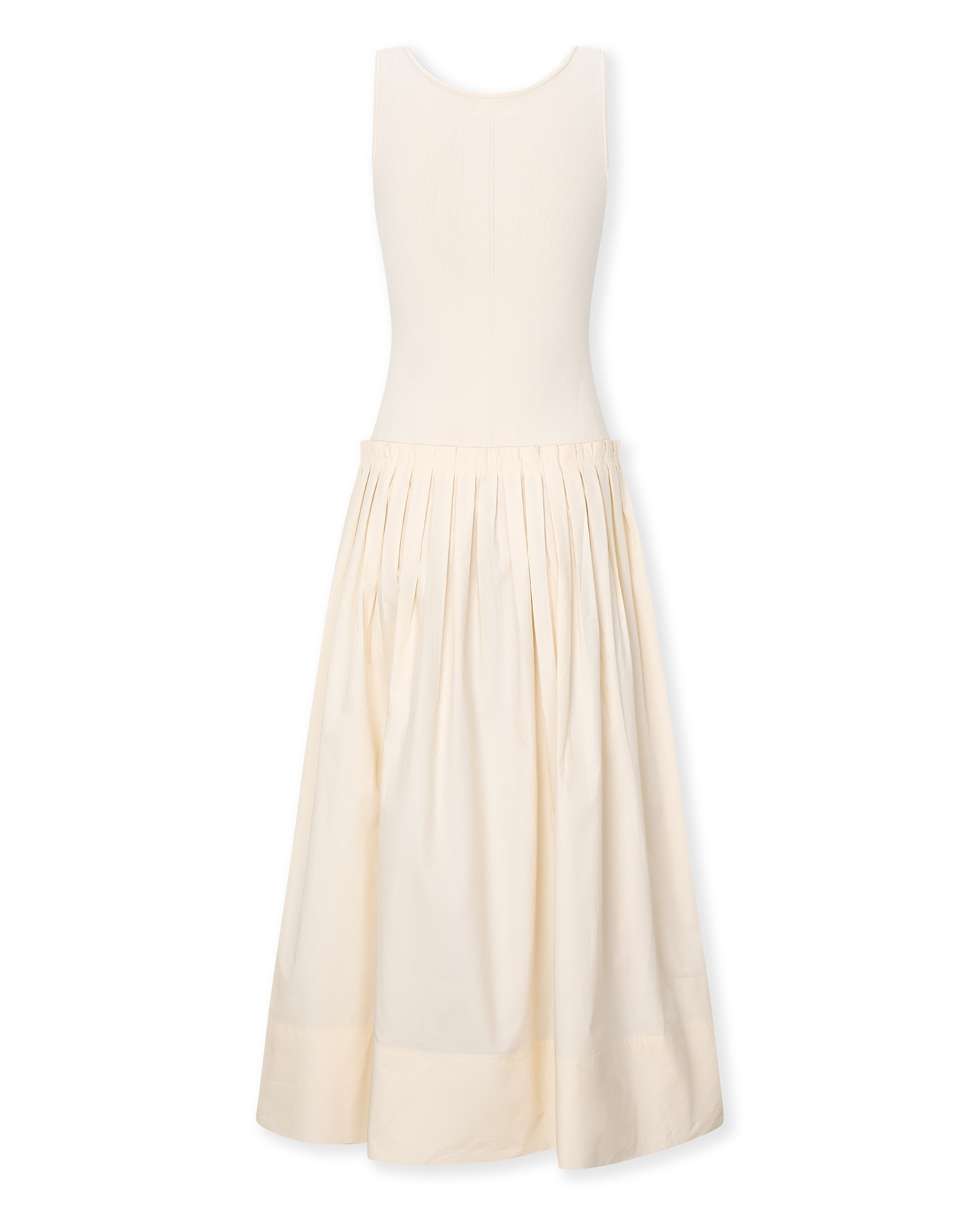 The Lina dress blends simplicity and elegance in a clean, contemporary silhouette. It combines a fitted knit bodice that enhances the shape with a full cotton skirt that brings lightness and movement. The rounded neckline and defined waist create a perfect balance between comfort and refinement. A versatile, timeless piece designed for everyday wear.