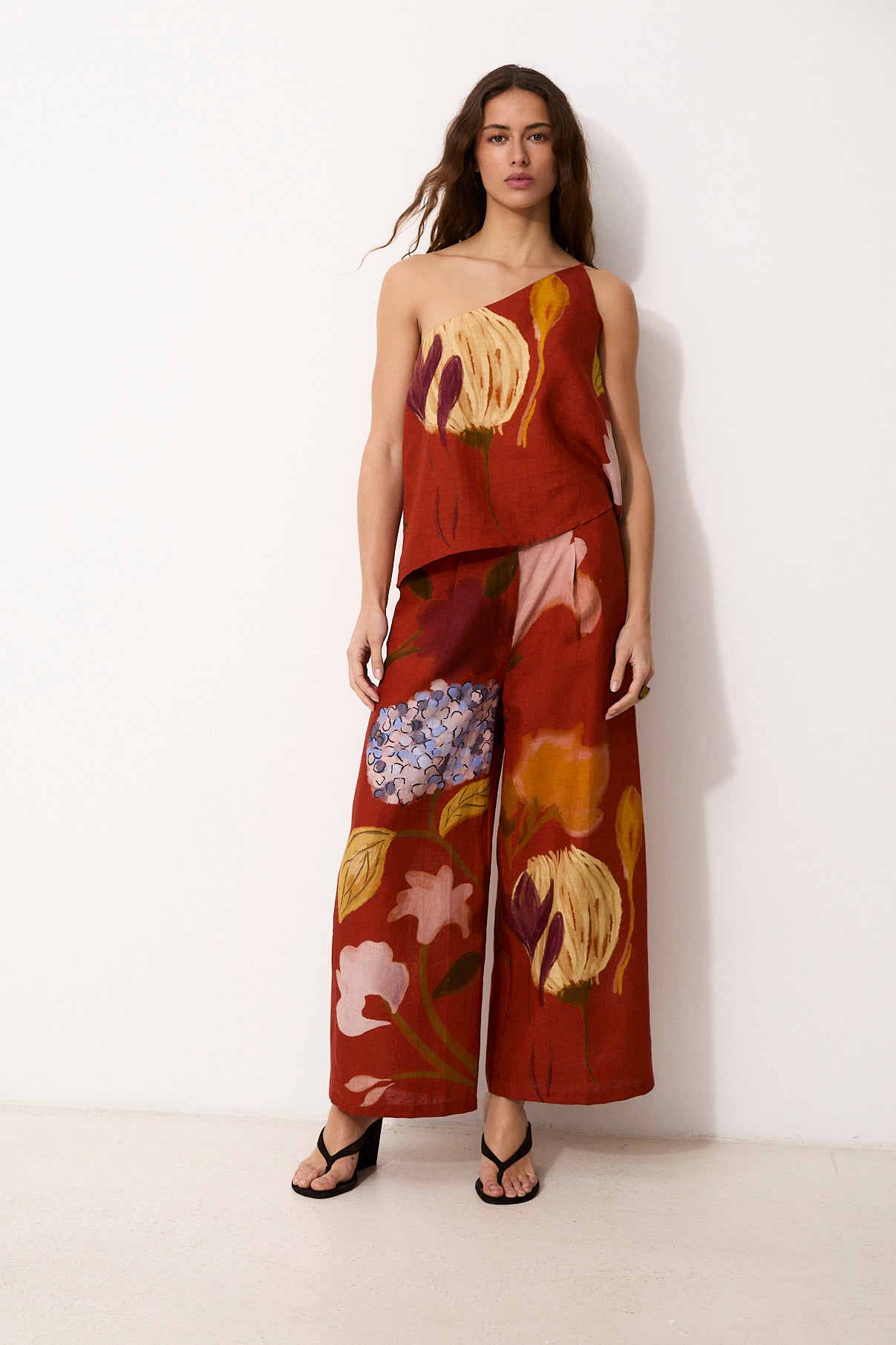 Their artistic print, rich in color and personality, is elevated by a fabric crafted on traditional looms, using exclusive artisanal techniques from its place of origin, making each piece truly special. The wide, fluid cut ensures comfort while maintaining a refined style.