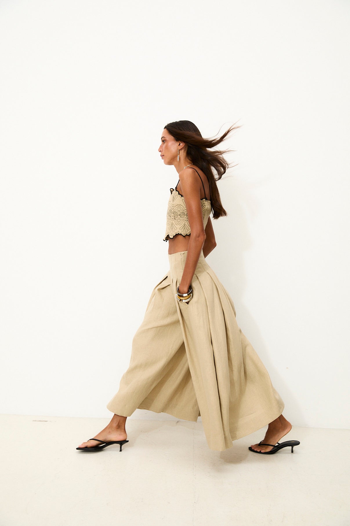 The Morris trousers are an elegant and timeless piece crafted from 100% linen, valued for their lightness and breathability. Featuring a high-waisted design with pleats, they create volume and movement with a fluid, sophisticated silhouette. Perfect for relaxed yet refined looks.