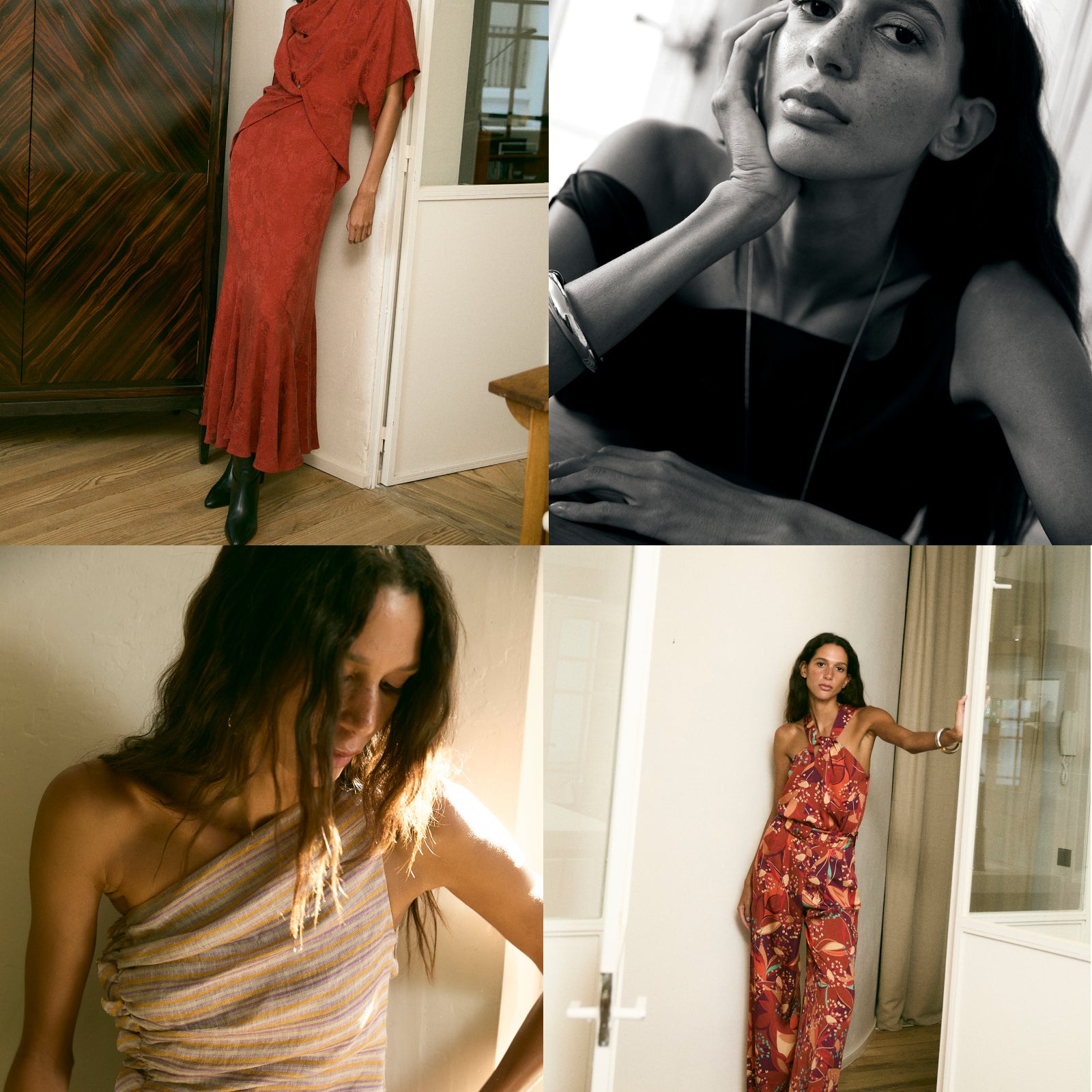 Keşfetmekipeksi slip elbiseler, özel dikim tulumlar, cilveli üstler ve sofistike uyumlarromantik tonlarda, lüks kumaşlarda ve hoş silüetlerde.